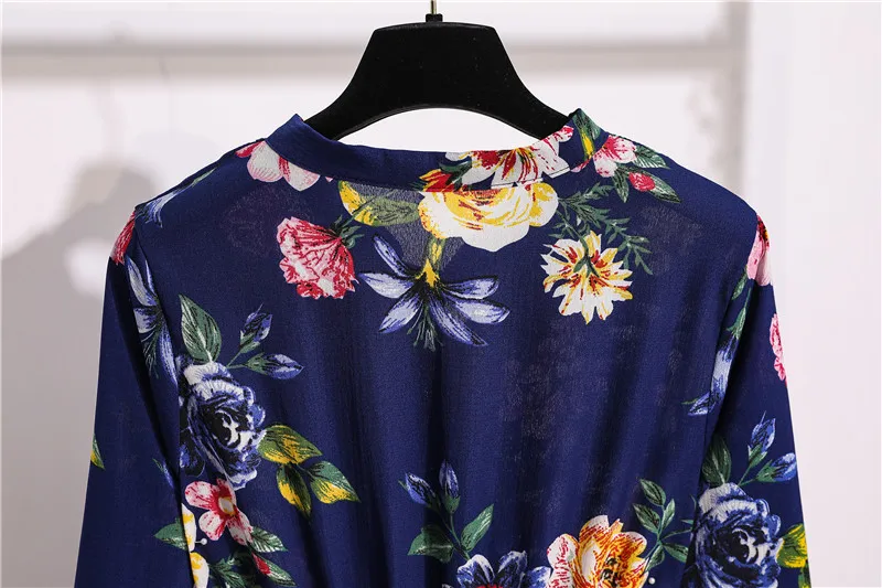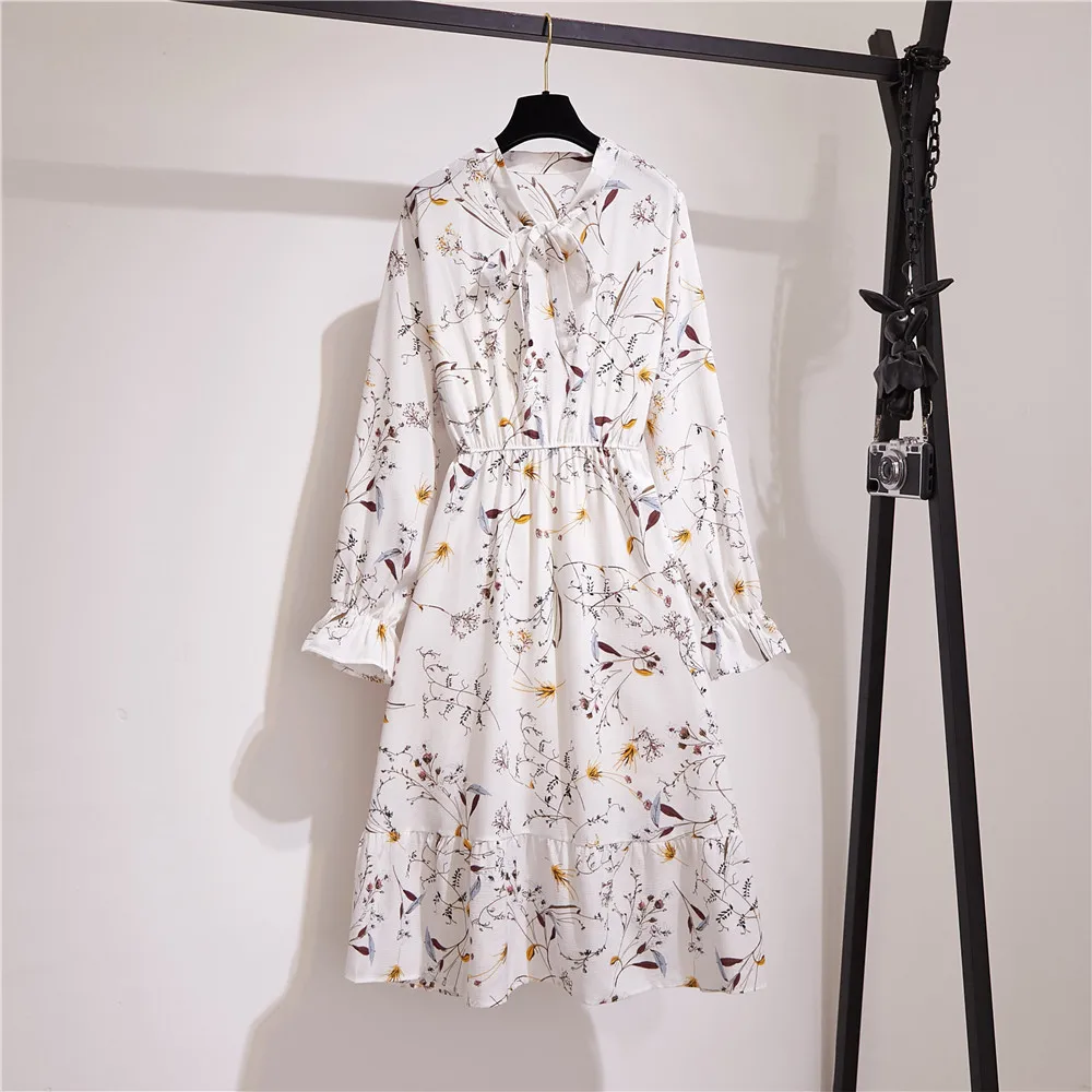Платье-рубашка женское шифоновое в горошек, с длинным рукавом и V-образным вырезом