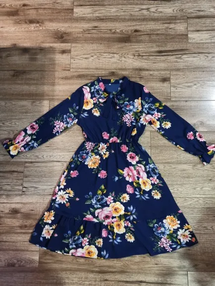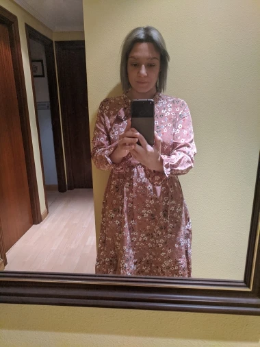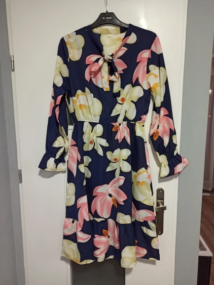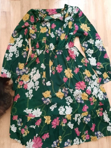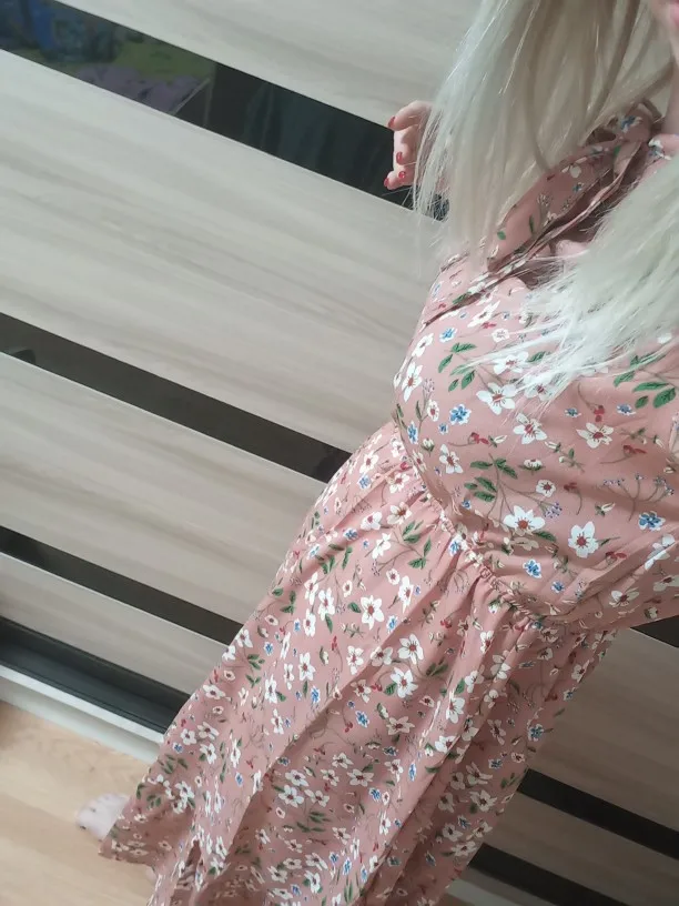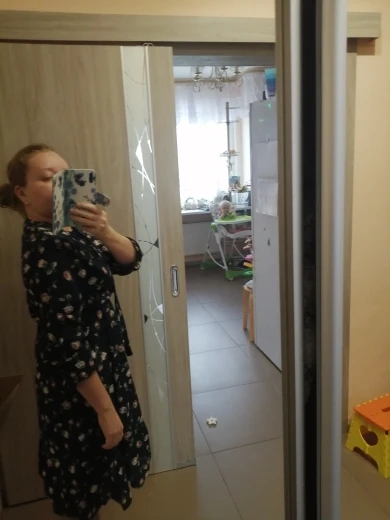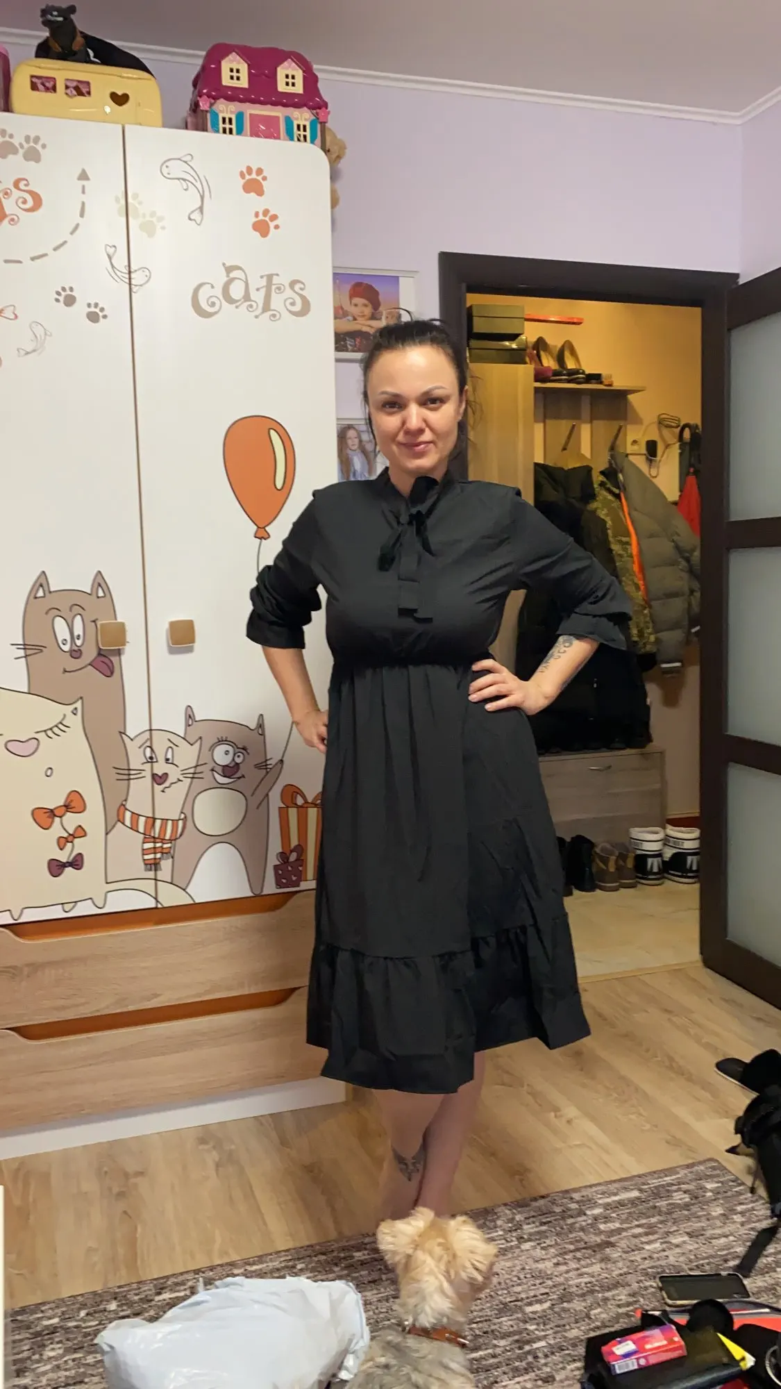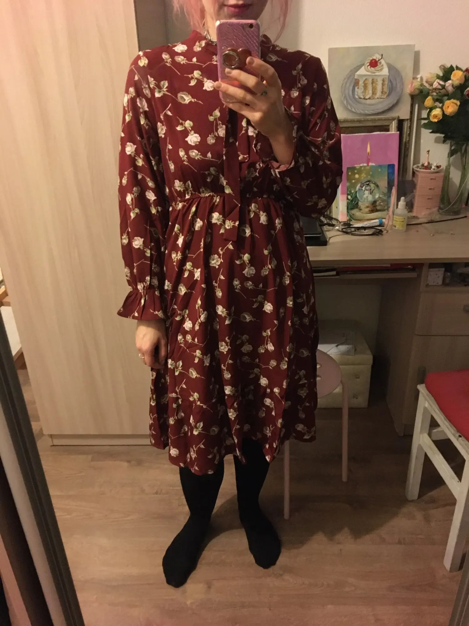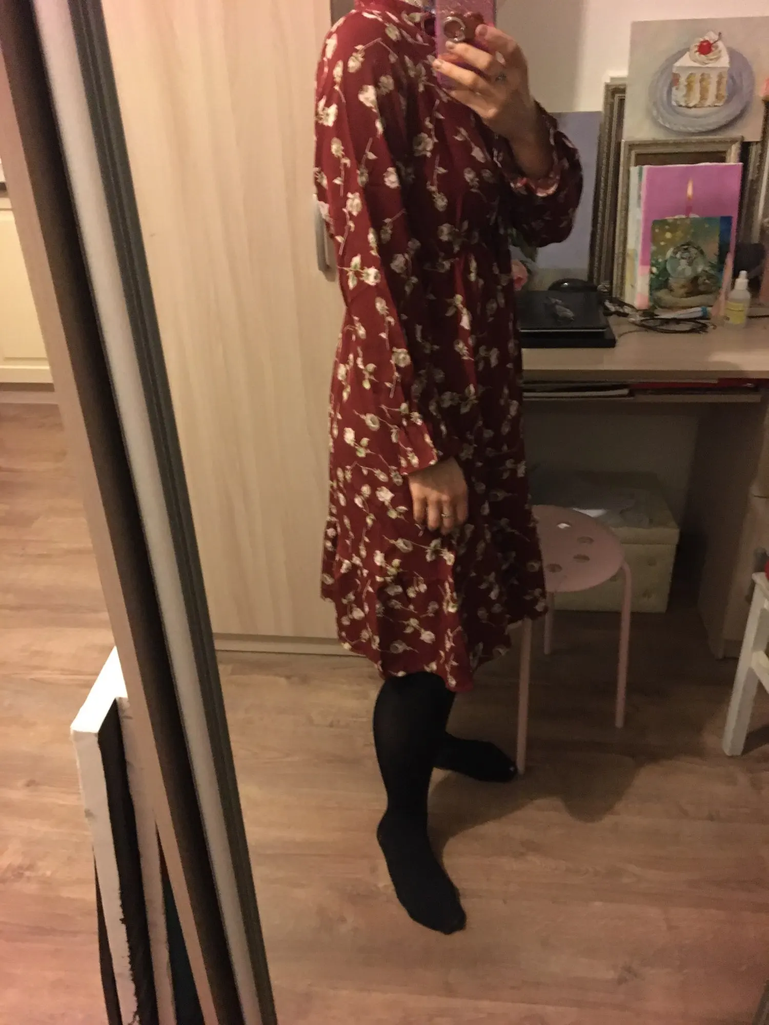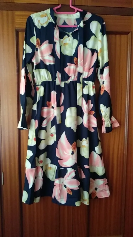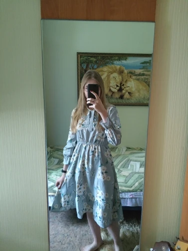 Идеально! Это та самая секунда, которую я прошу. Описание надежное, как по размеру, так и по цвету и принту. Ниже колен, рукава три четверти