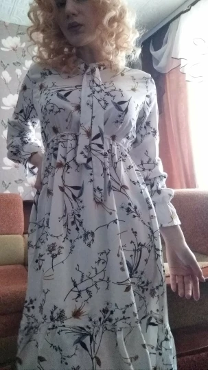 Платье шло очень долго, больше двух месяцев в Минск. Но я заказывала не в сезон, поэтому не страшно. Качество меня очень порадовало, материал приятный. Я ожидала тонкий шифлн, но этот материал приятнее к телу, мягче и не такой тонкий и прозрачный. На свои параметры 88*70*94 взяла L - села как надо. На рост 164 длина по колено. Немного завышена линия талии, думаю можно скорректировать широким ремнем. Рукава по длине отлично. Спасибо продавцу, рекомендую это платье.