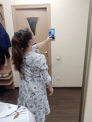 Неплохое платье, синтетика но приятная. На рост 165 и параметры 78-57-84 взяла М. Резинка не на талии, а под грудью, но так тоже неплохо. Рукава коротковаты. Длина платья ровно по колено