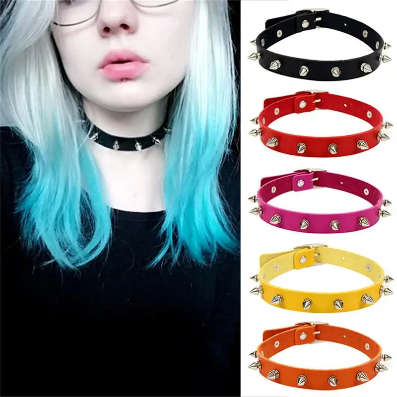 Женский кожаный чокер в стиле Харадзюку, ошейник с шипами и заклепками, вечернее Клубное ожерелье-чокер в готическом стиле, Ювелирное Украшение в стиле панк-рок