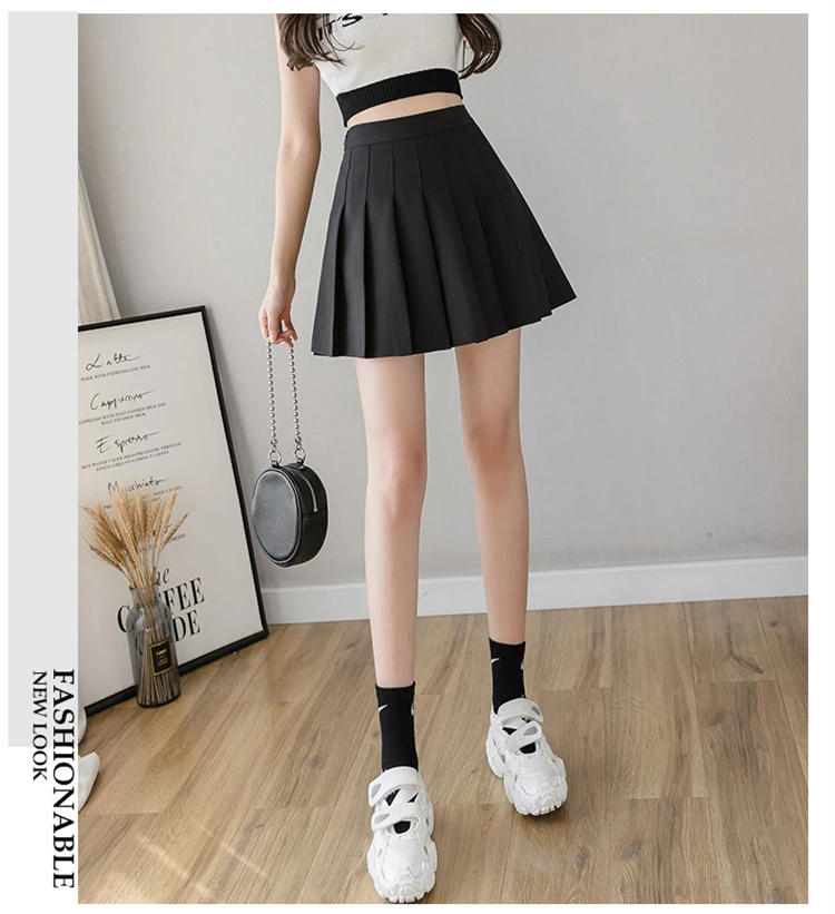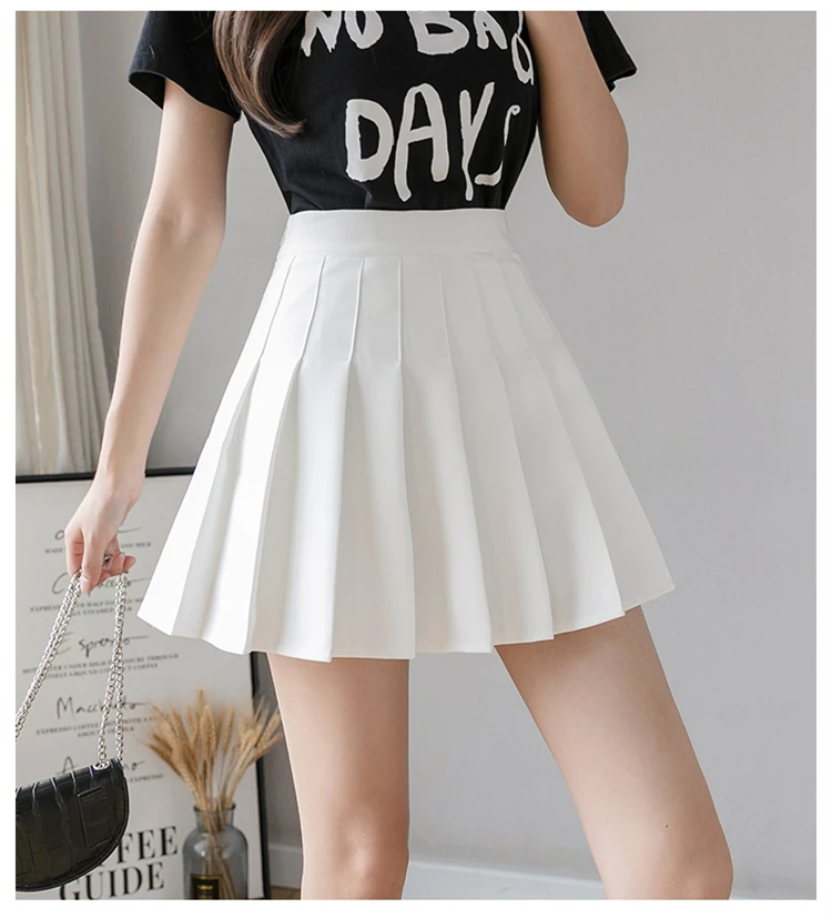 Мини-юбка женская плиссированная, модная однотонная Милая школьная юбка-трапеция с завышенной талией, Розовая белая черная голубая, 2020