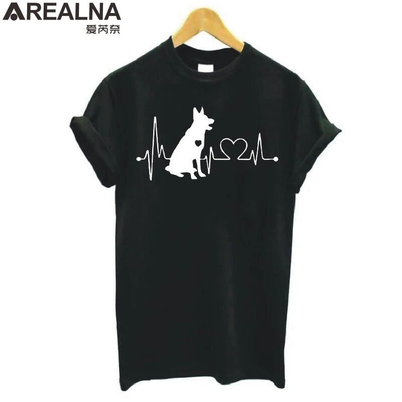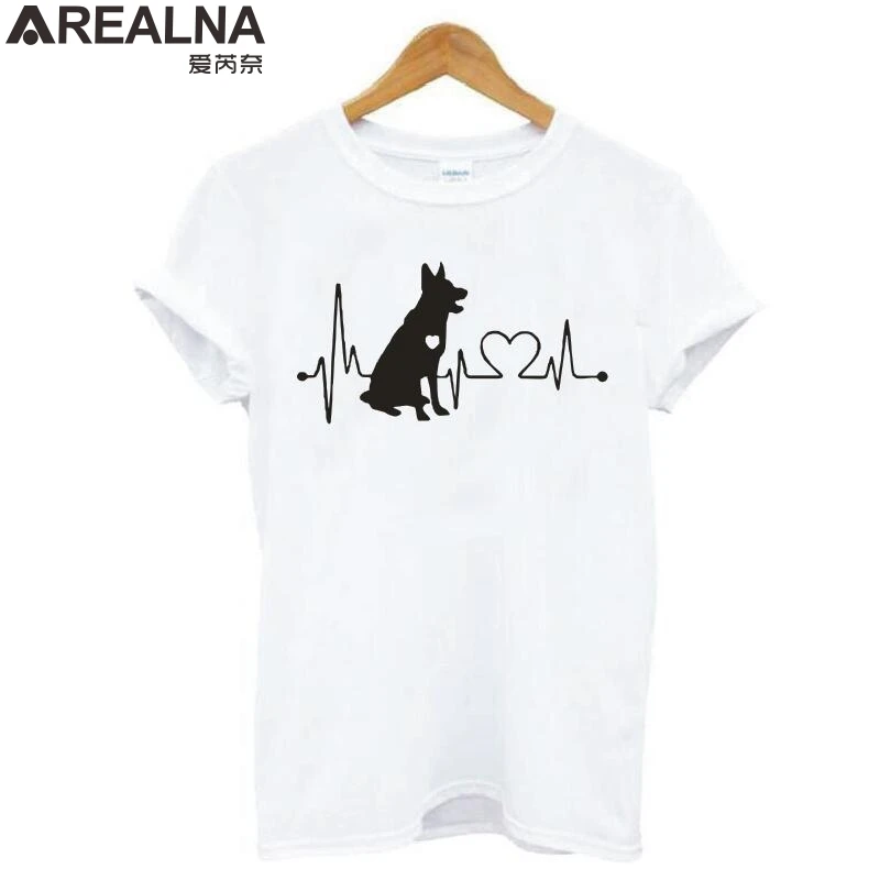 Женская футболка с коротким рукавом, Повседневная летняя футболка из 100% хлопка с принтом сердечного ритма и немецкой овчарки, женские топы