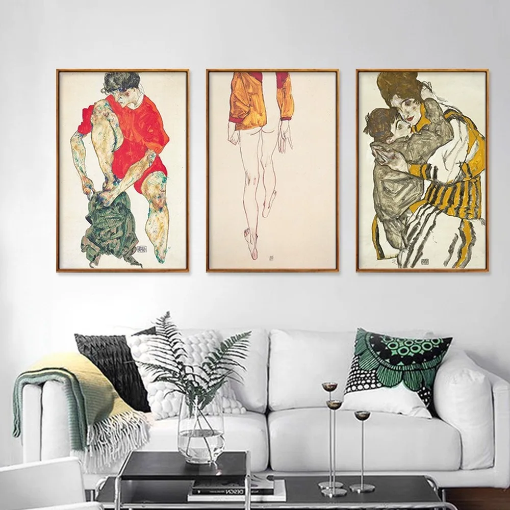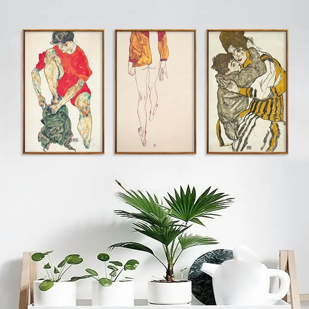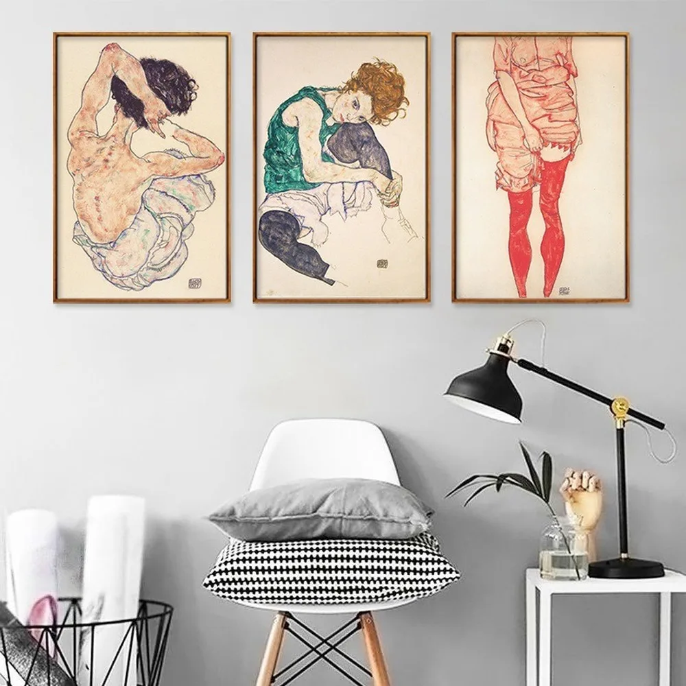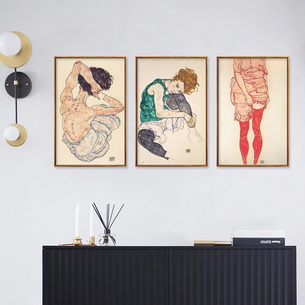 Современный минималистский портрет, холст, живопись Egon Schiele, художественный постер для жены, домашний декор, прикроватные винтажные картины