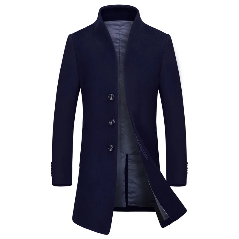 Брендовые мужские шерстяные пальто, модные облегающие однобортные ветровки, Осень-зима, воротник-стойка, плотная теплая верхняя одежда для мужчин