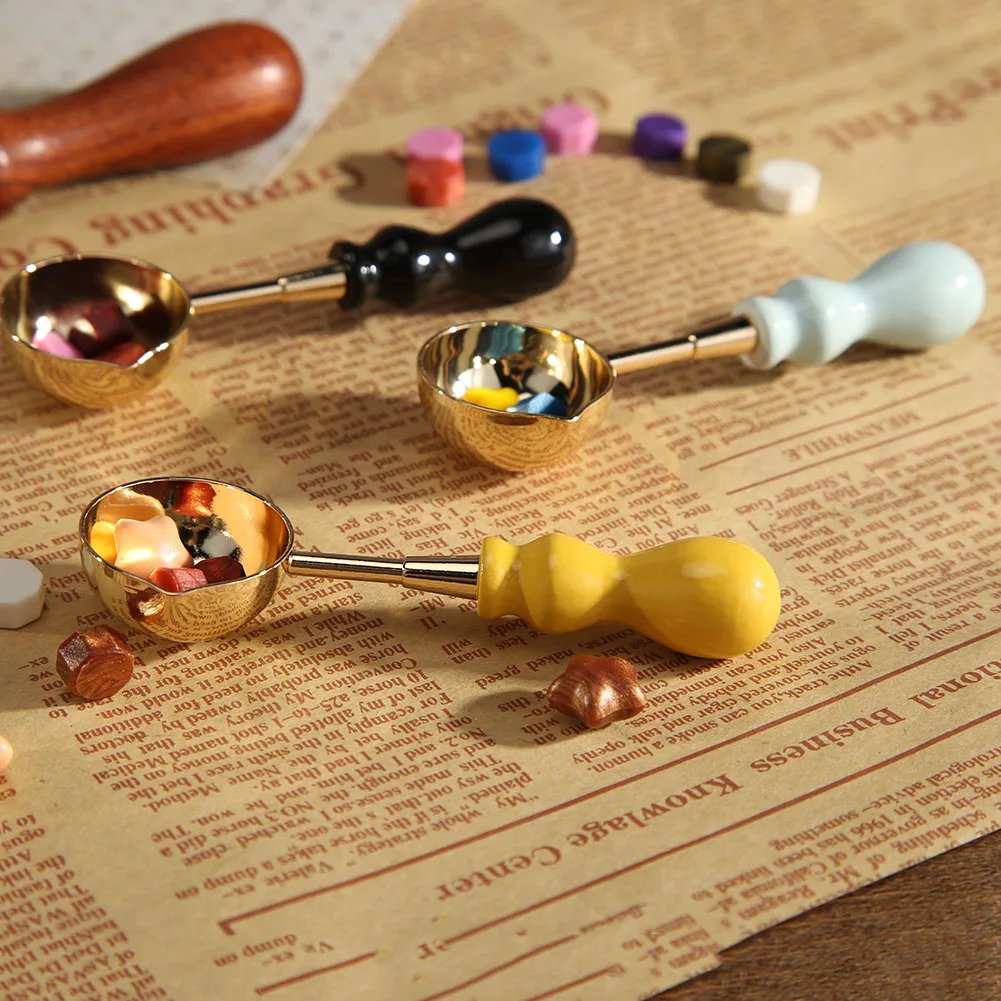 Винтажная деревянная ручка, герметичная ложка для воска, латунная печать, штамп, плавление воска, совок для скрапбукинга, альбом, конверт