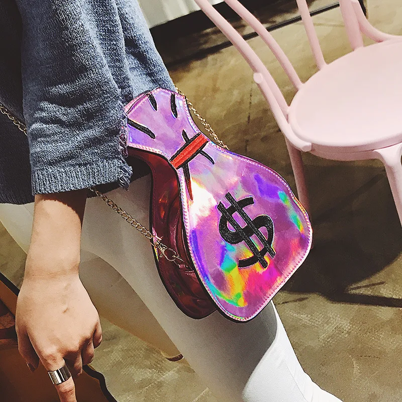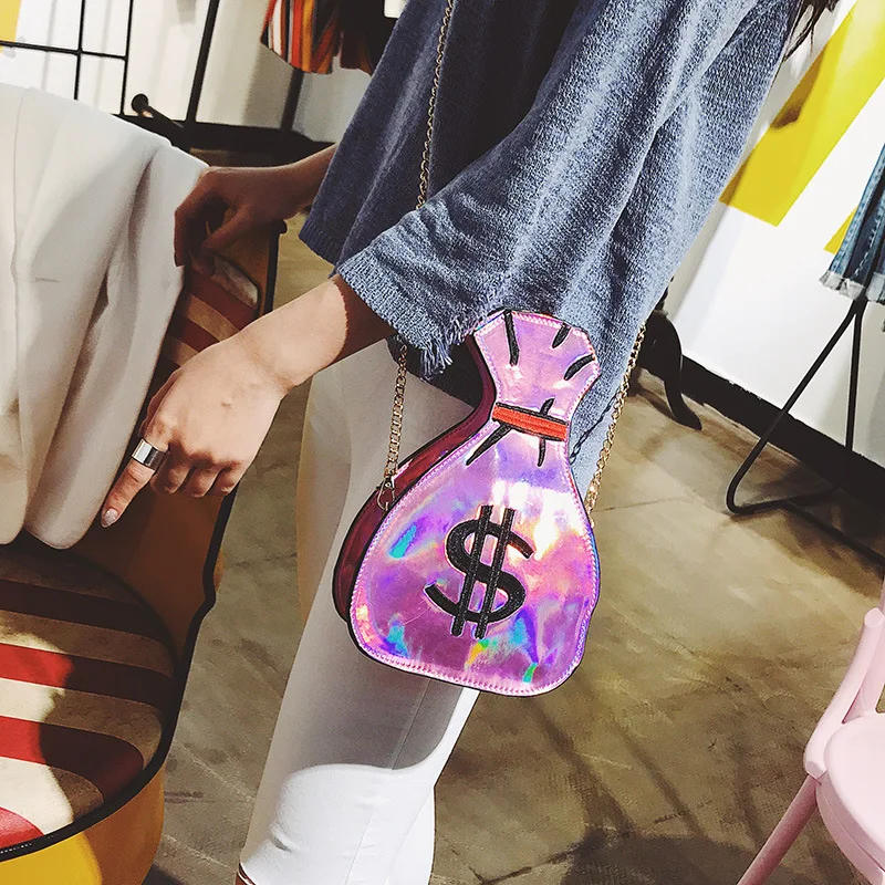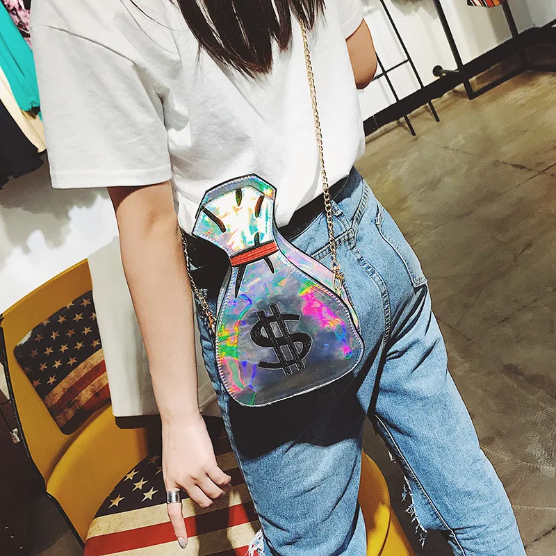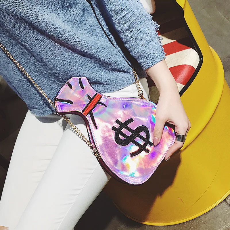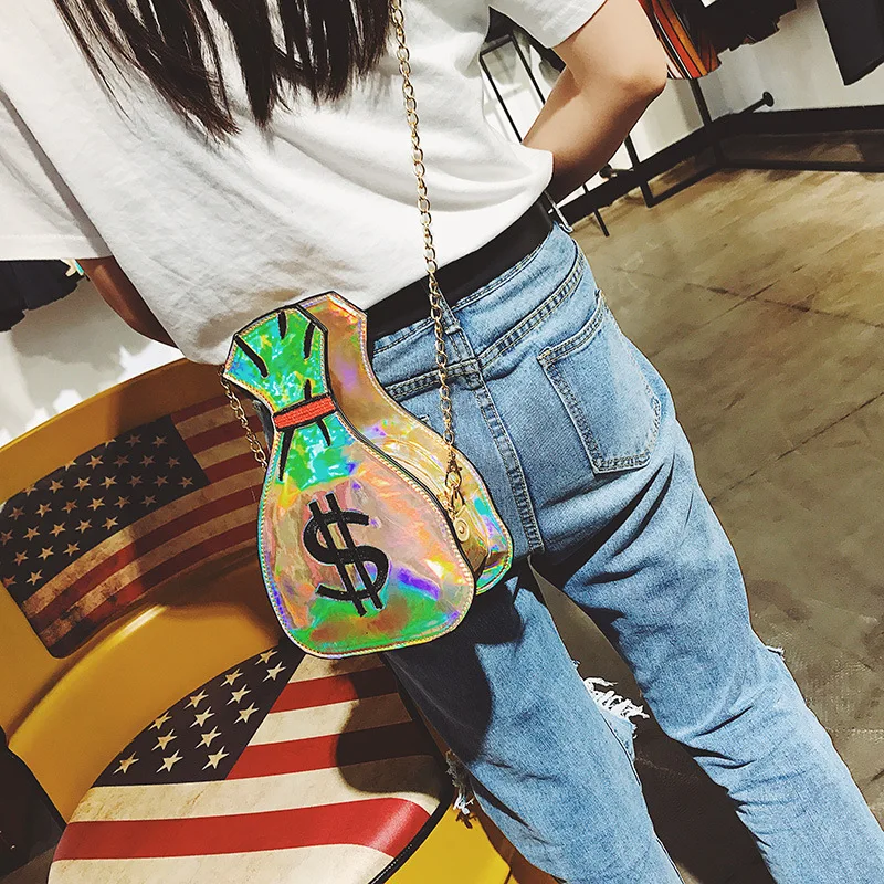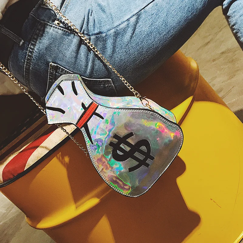 2020 Лазерная голографическая женская сумка, красочная сумка на цепочке в форме денег, сумочки через плечо, модные женские Мини-сумочки в стиле Харадзюку