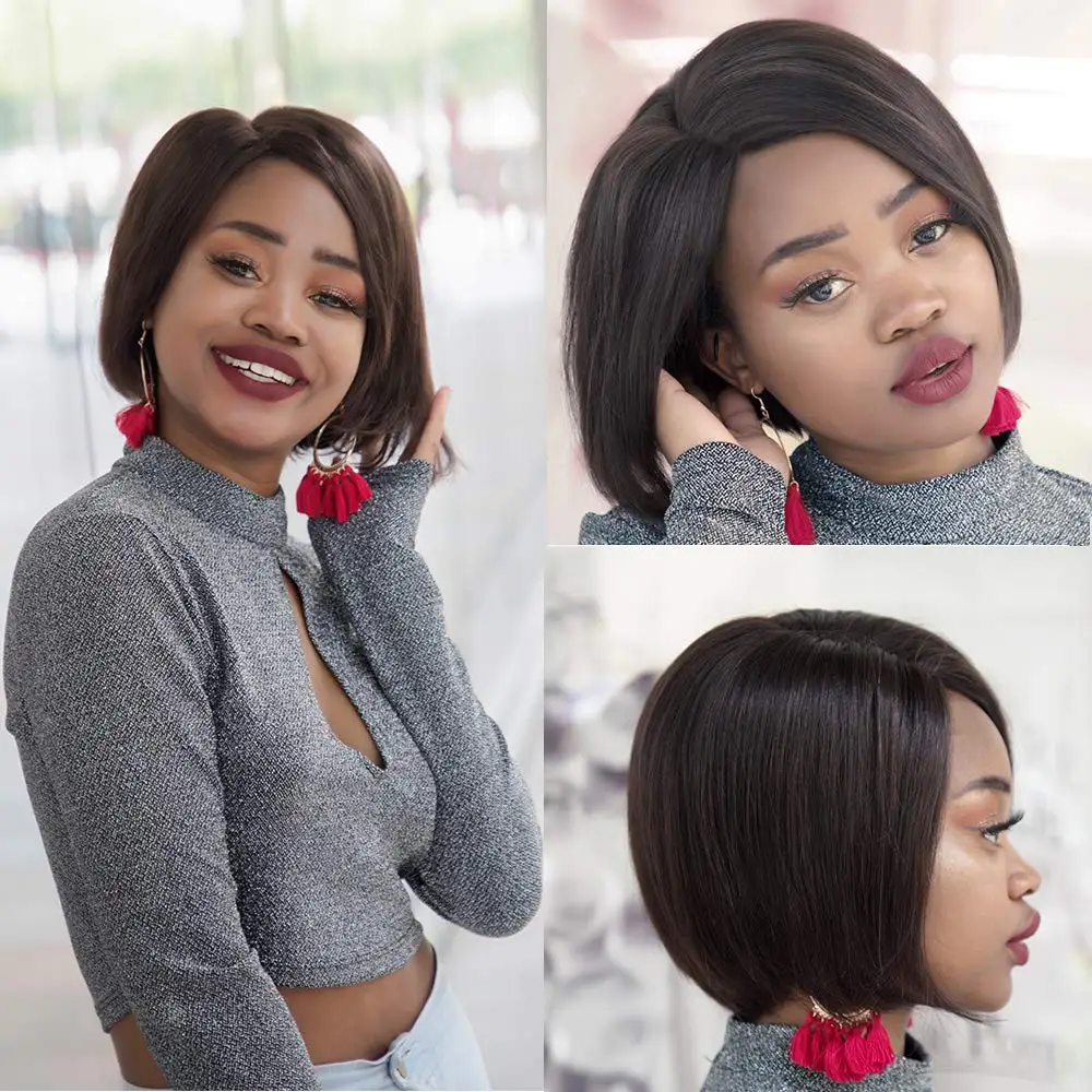 Glueless бразильские Remy прямые короткие Боб часть парики шнурка человеческие волосы дешевые человеческие волосы парики с бесплатной доставкой Дешевые Кружевные парики US $49,98/