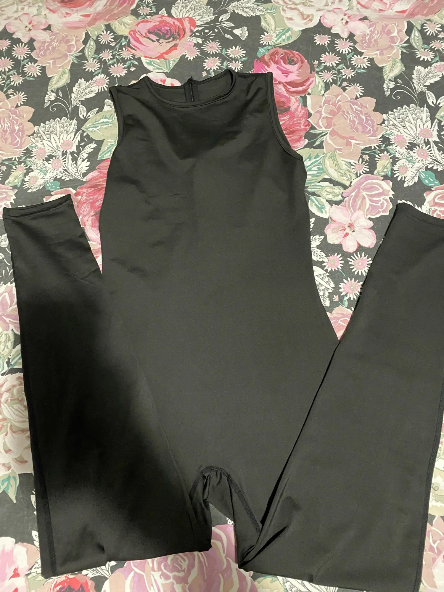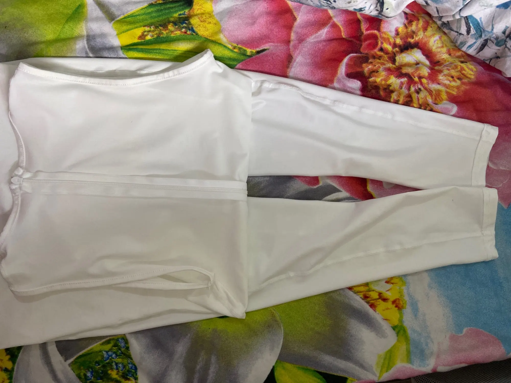 Посылка пришла быстро. Костюм мне подошёл хорошо. Мои параметры рост 166см, ОТ 86 см, ОБ 116см. Не просвечивается, даже когда приседаешь. Ещё в нем не тренировалась. Не удобно застегивать молнию сзади, я его одела молнией вперёд.