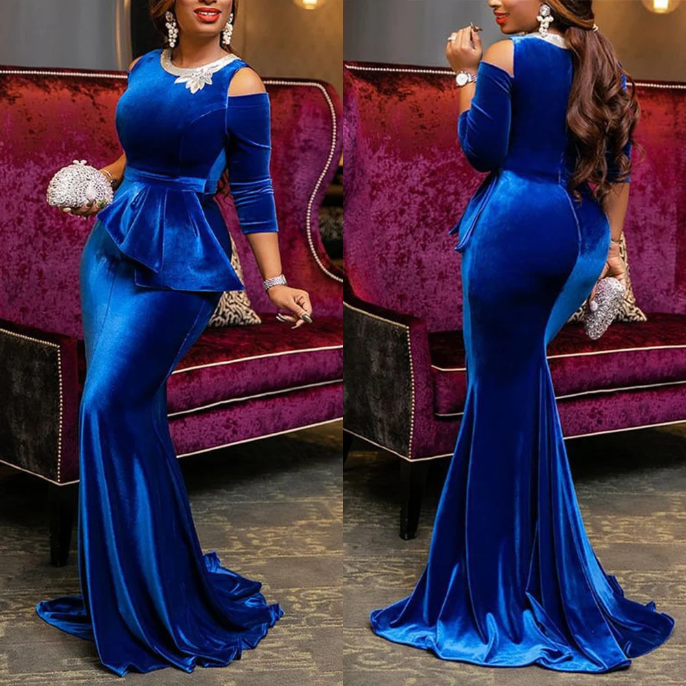 Женское вельветовое платье-русалка, длинное винтажное вечернее праз...