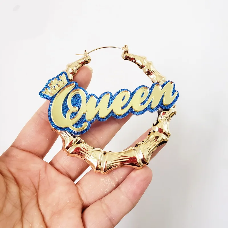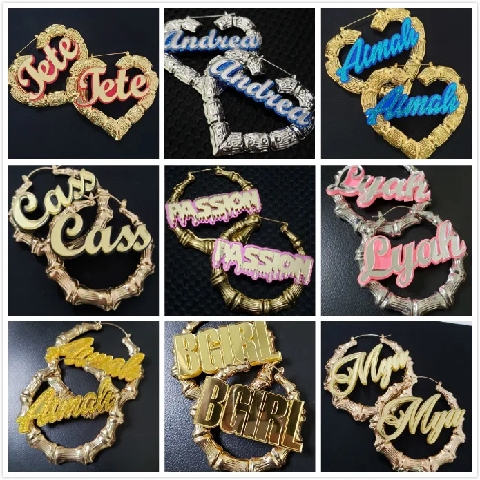 Серьги из бамбука, позолоченные, с именем на заказ, в стиле хип-хоп...