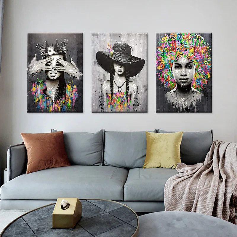 Художественный портрет граффити, картины на холсте, рисунки, абстрактные бански, художественные постеры и принты, картины, украшение для стены дома