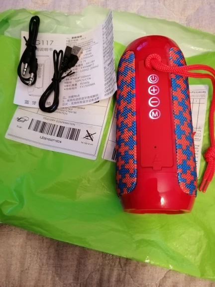 Соответствует описанию, звук хороший, чистый, достаточно громко играет!! размер удобный! Хорошо упакована, пришла без повреждений, спасибо продавцу!!!!