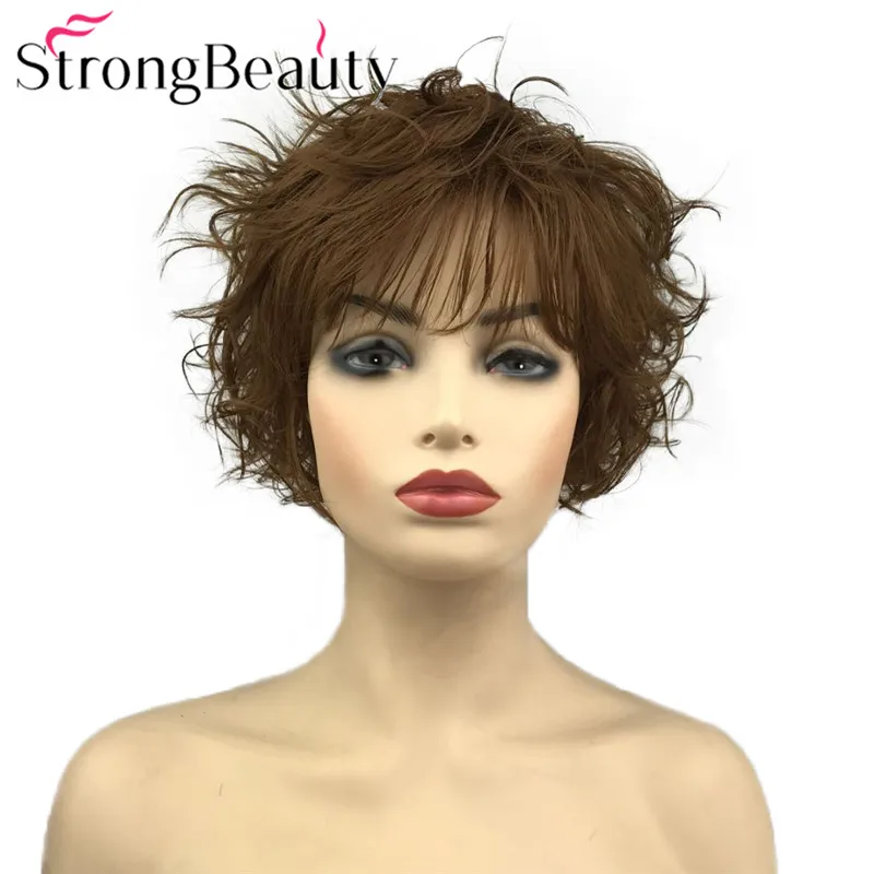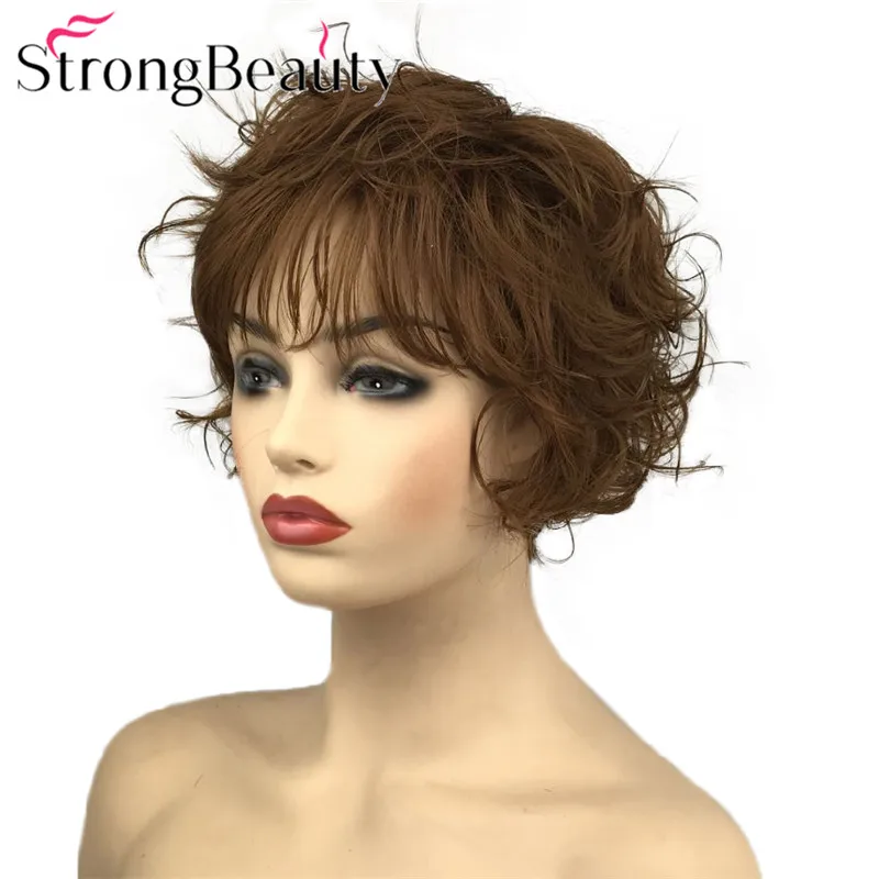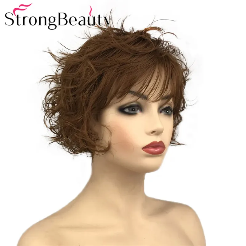 StrongBeauty Short Curly Wig Medium Auburn Women Hair Synthetic Wigs Daily Wig