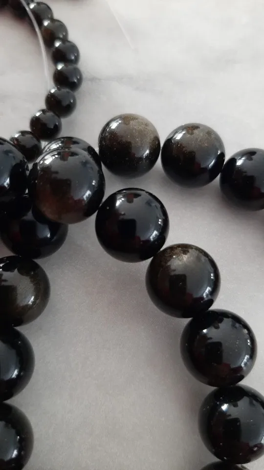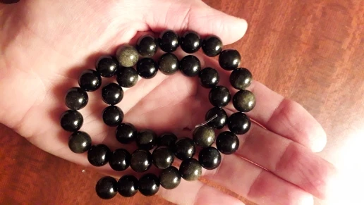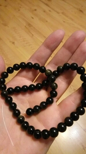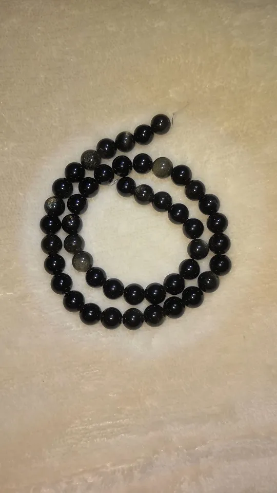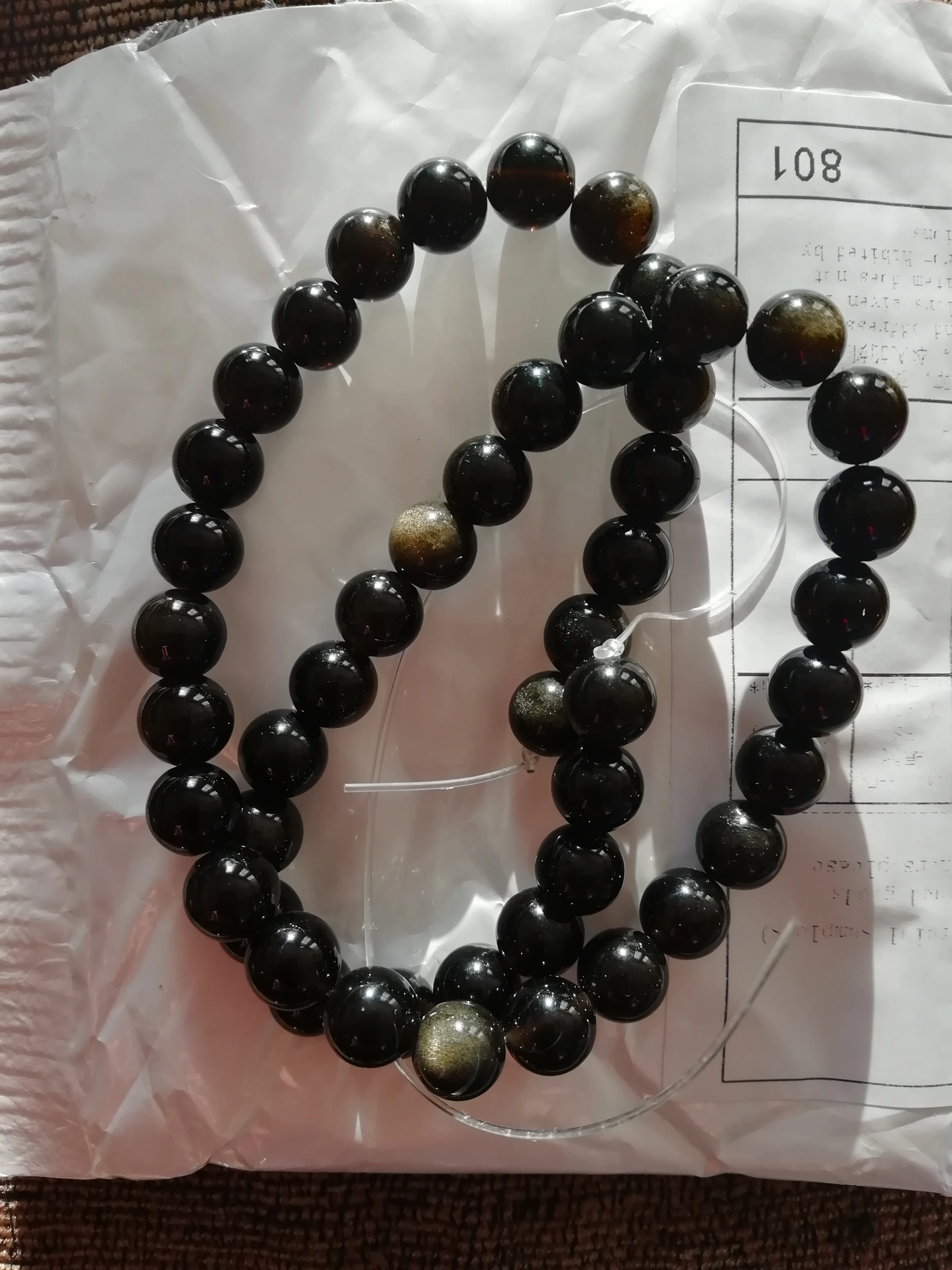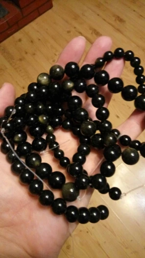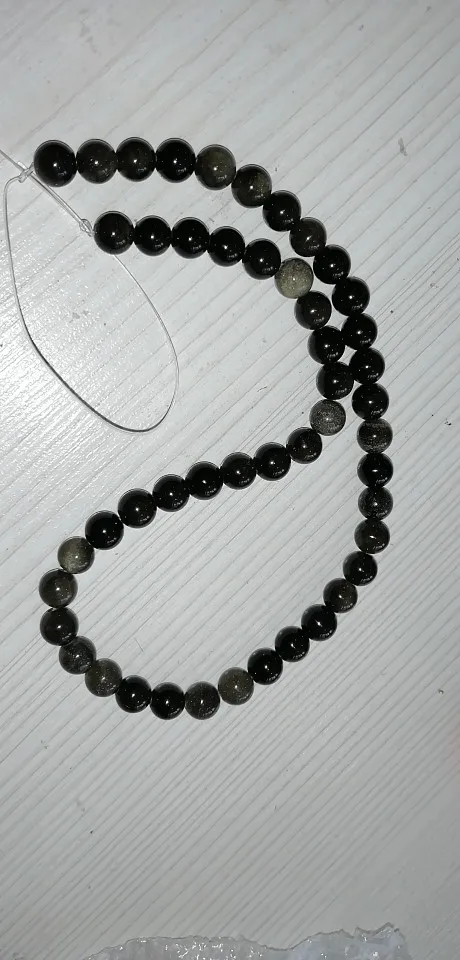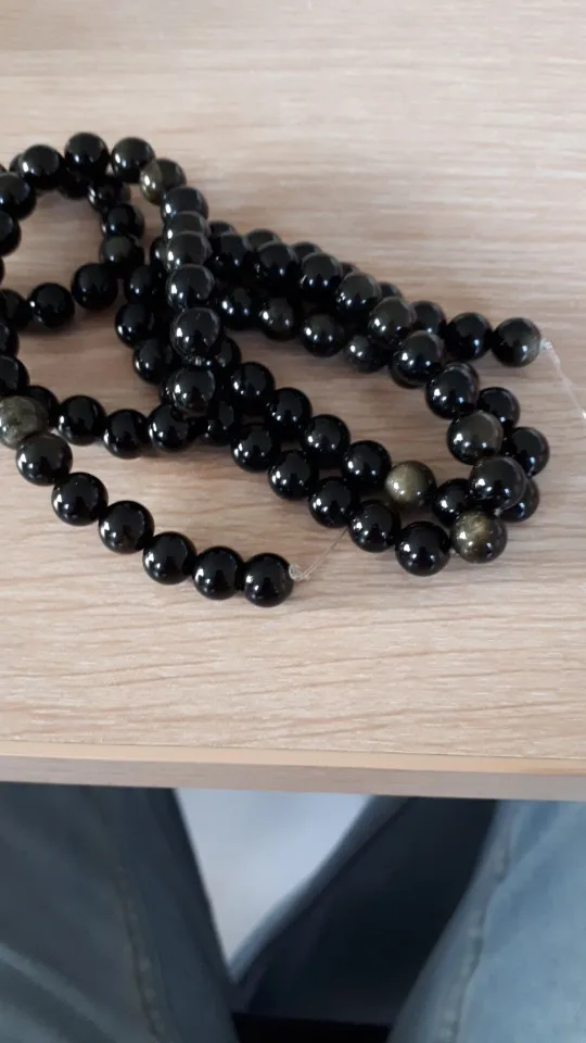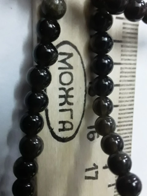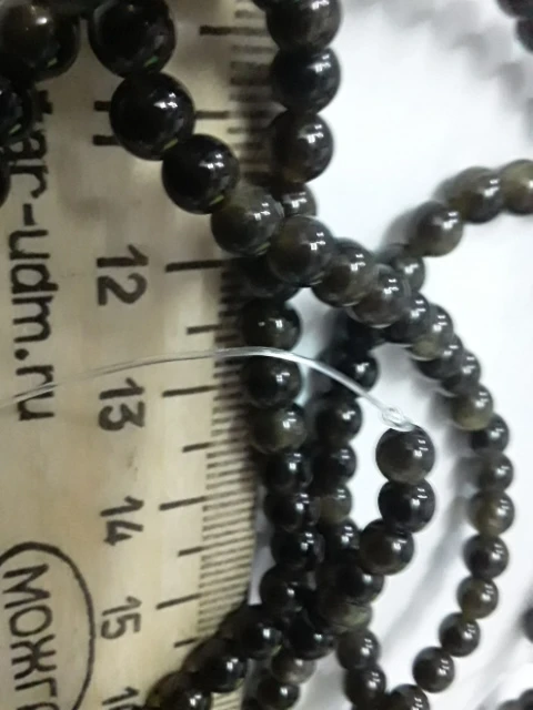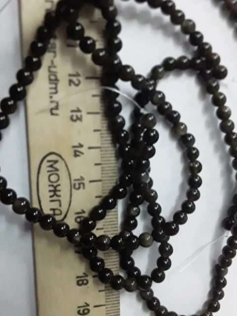 Красивый золотистый обсидиан, большинство блестят, попадаются полупрозрачные. Заказывала много разных нитей в этом магазине, в каждой была парочка разбитых бусин, плюс у разных нитей может незначительно отличаться диаметр бусин. За свою цену все ещё хорошо