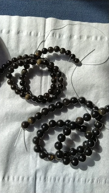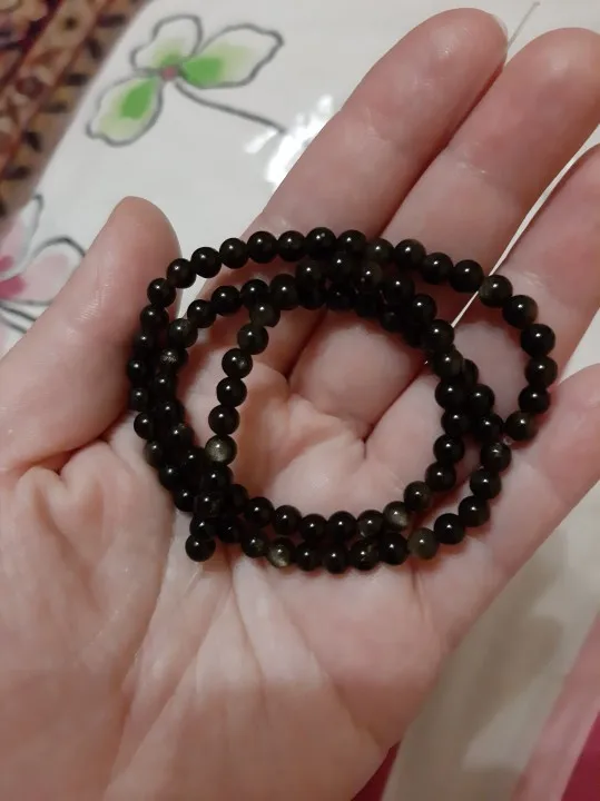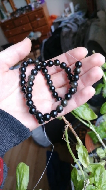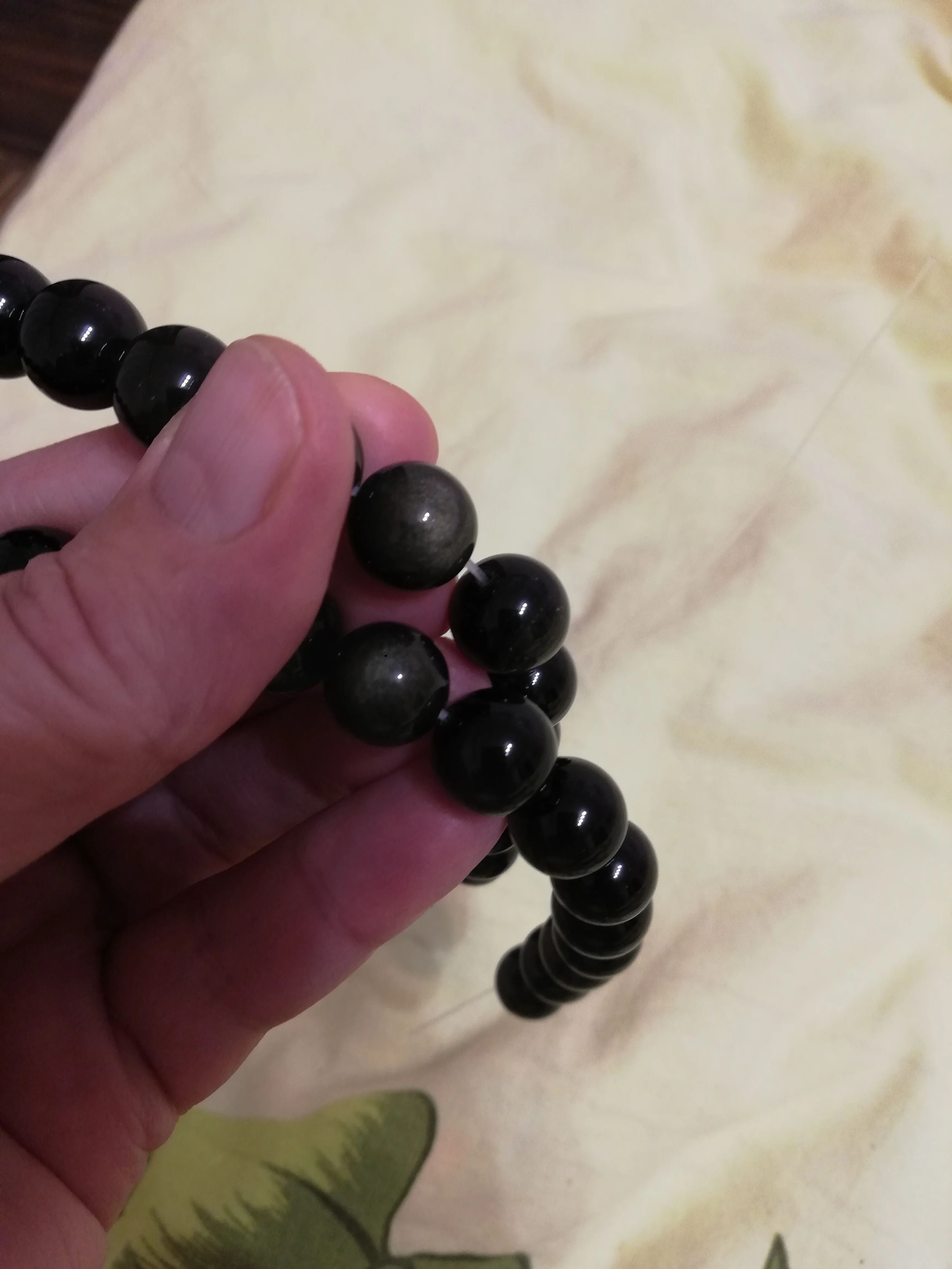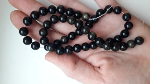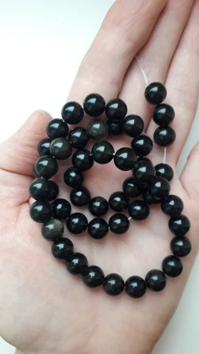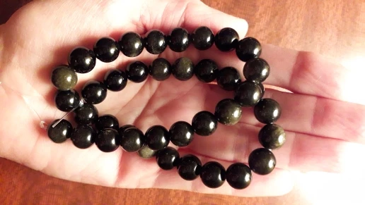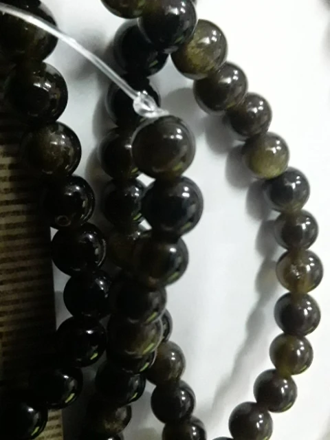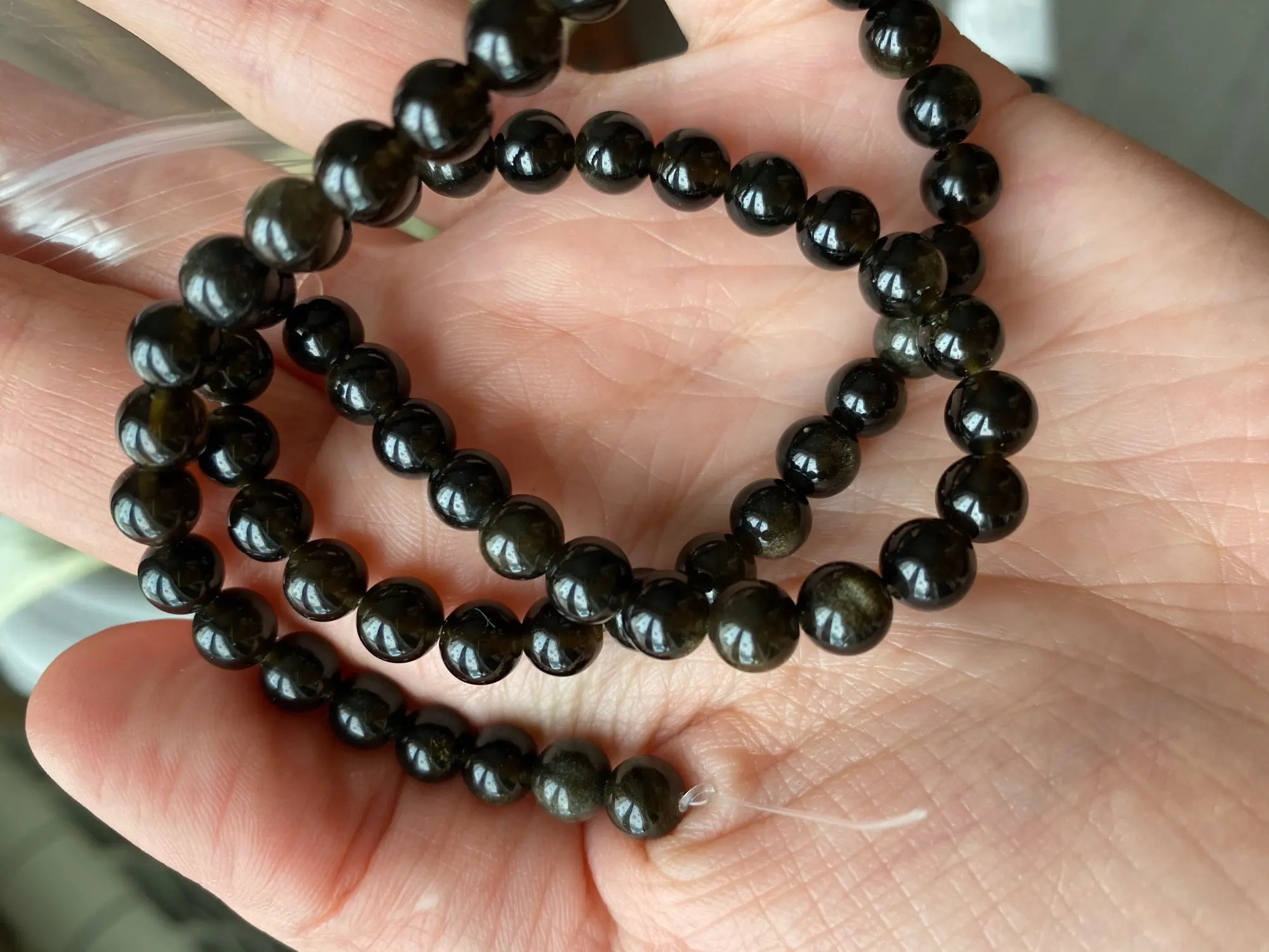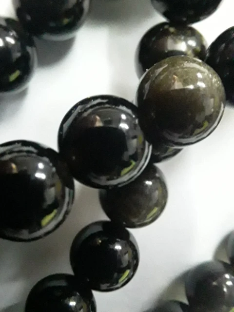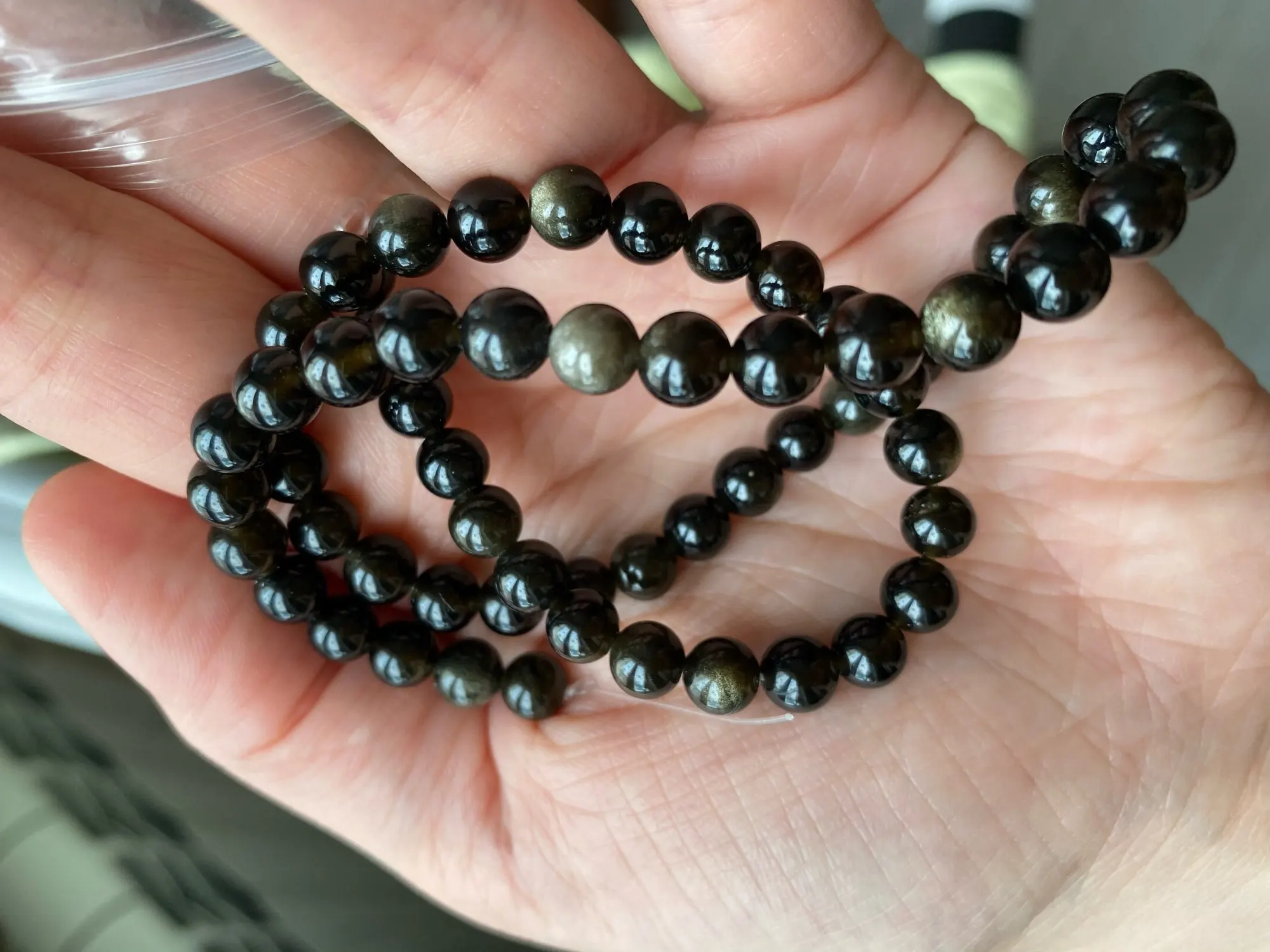 Красивый золотистый обсидиан, большинство блестят, попадаются полупрозрачные. Заказывала много разных нитей в этом магазине, в каждой была парочка разбитых бусин, плюс у разных нитей может незначительно отличаться диаметр бусин. За свою цену все ещё хорошо