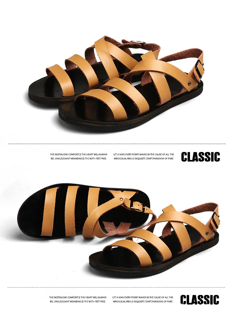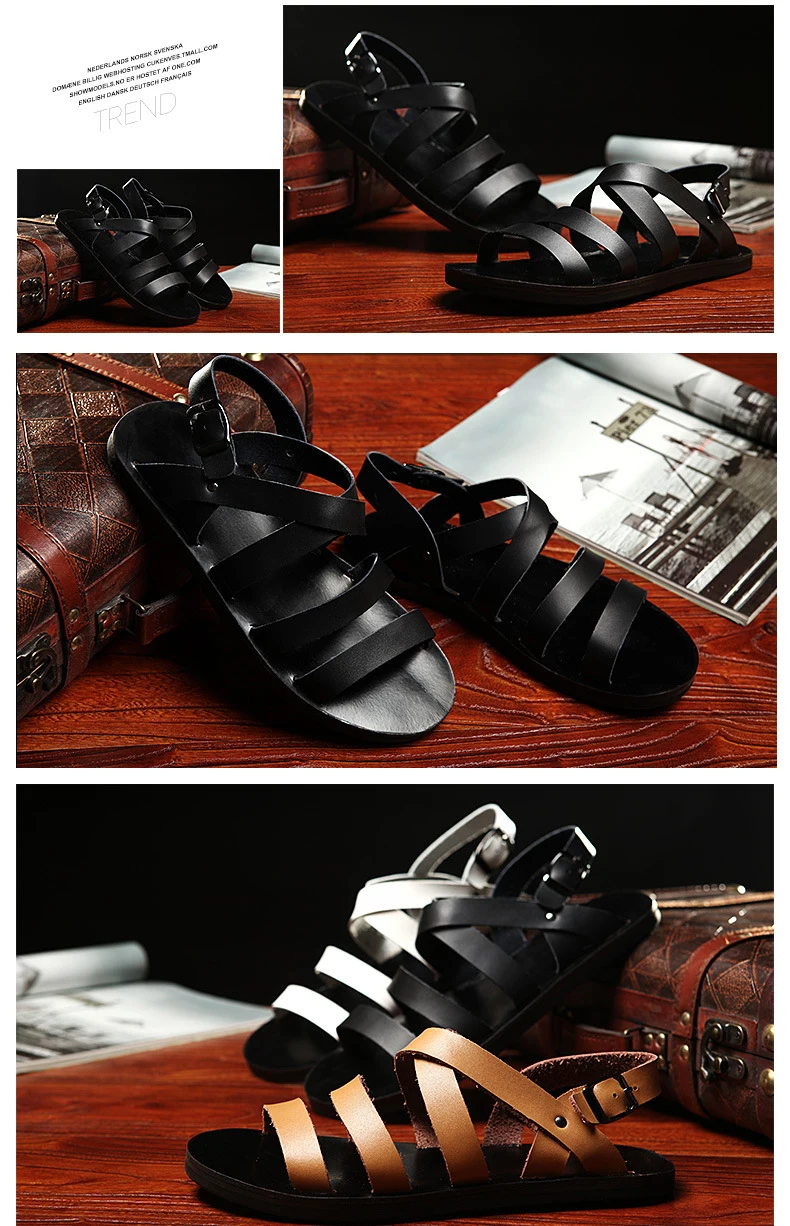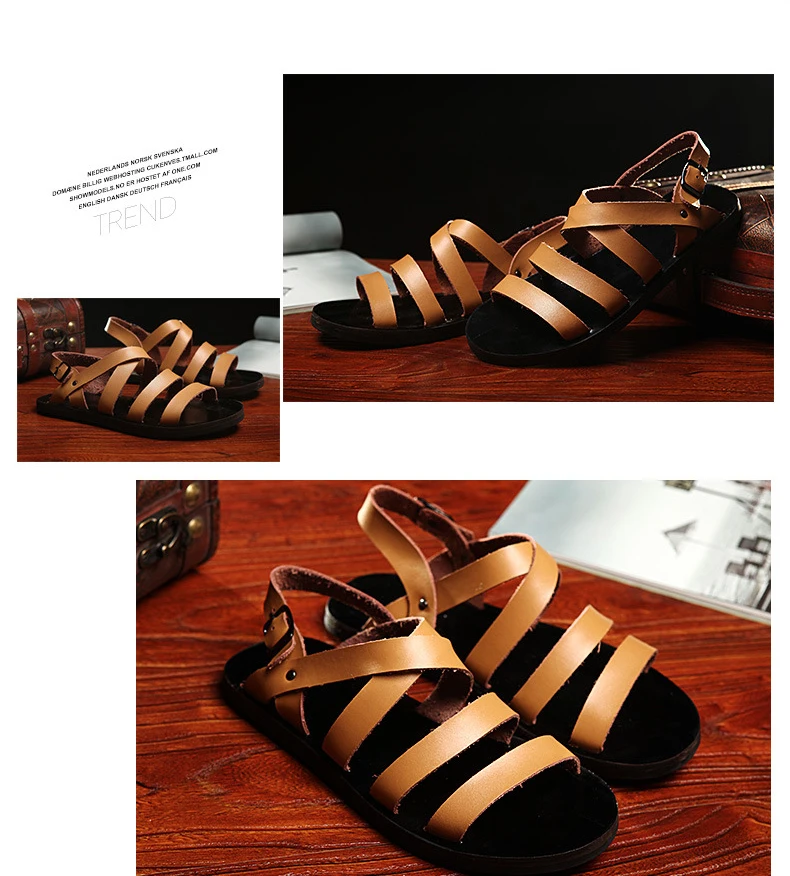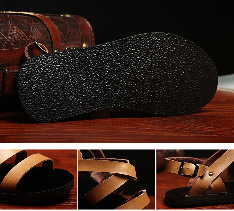 Мужские пляжные сандалии из натуральной кожи, шлепанцы для отдыха, Уличная обувь в европейском стиле, большие размеры 38-46