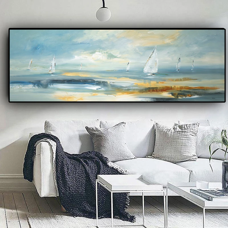 Картина маслом на холсте, натуральный абстрактный пейзаж на лодке, плакаты и принты Cuadros, Скандинавская Настенная картина для гостиной