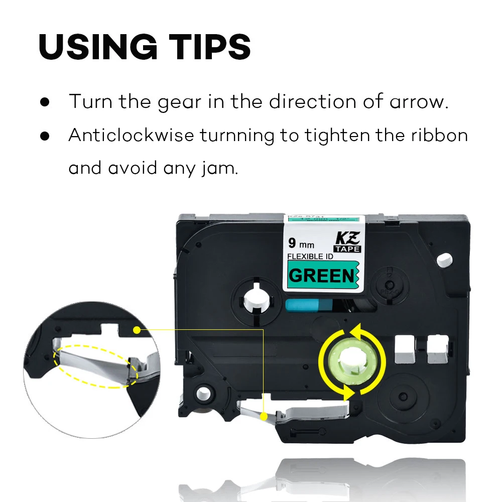 9 мм Tze-FX721 Гибкая этикетка черная на зеленой ламинированная этикетка лента гибкий кабель Этикетка ленты TzeFX721 Tze FX721 для P-touch PT
