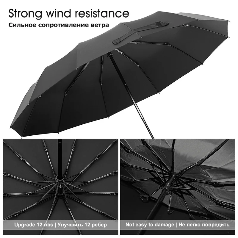 Складной зонт, прочный большой аксессуар с защитой от ветра, 12 ребер, длинная ручка, для мужчин и женщин