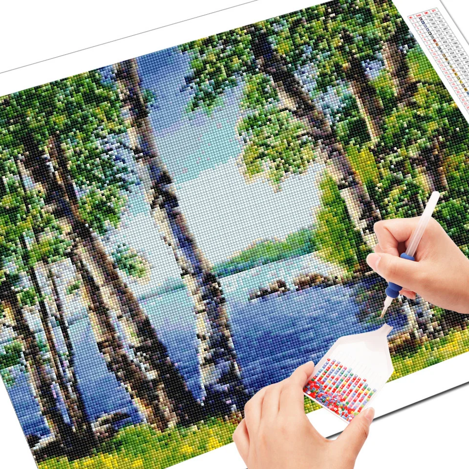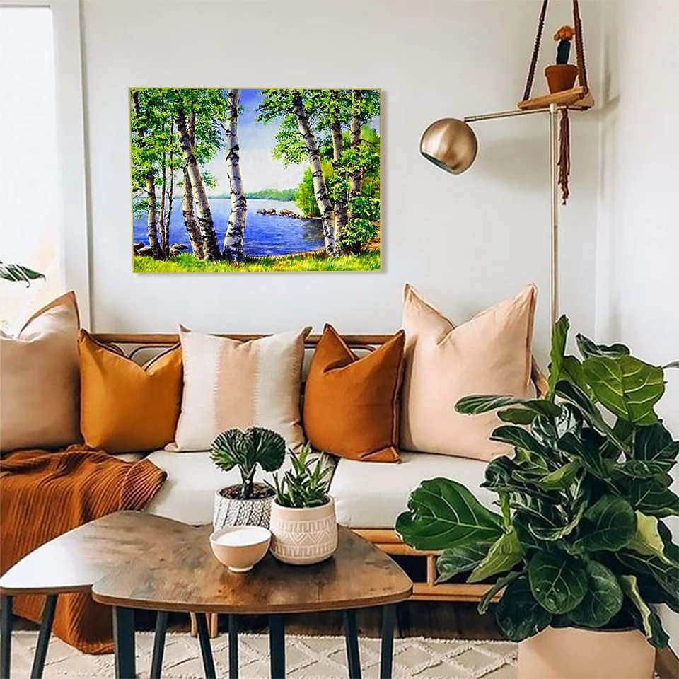 Алмазная живопись EverShine с деревом, пейзаж, полная выкладка, алмазная вышивка из белой березы, рисунок озера стразы, мозаика ручной работы