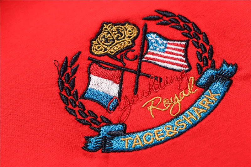 Мужская рубашка-поло Tace Shark, из 95% хлопка, с вышивкой в виде акулы, с коротким рукавом, Повседневная деловая рубашка-поло