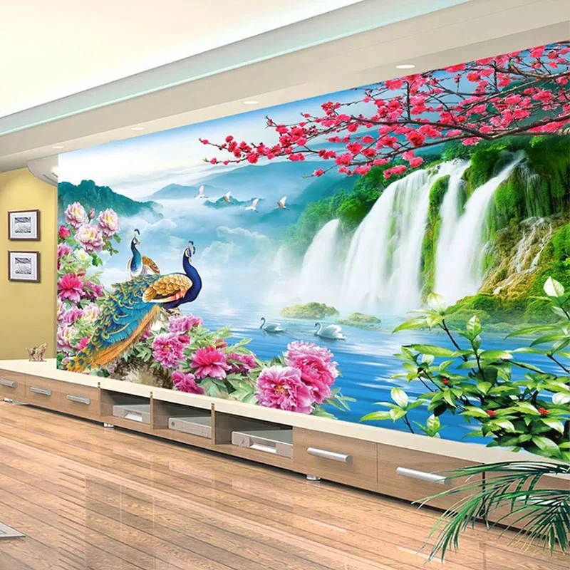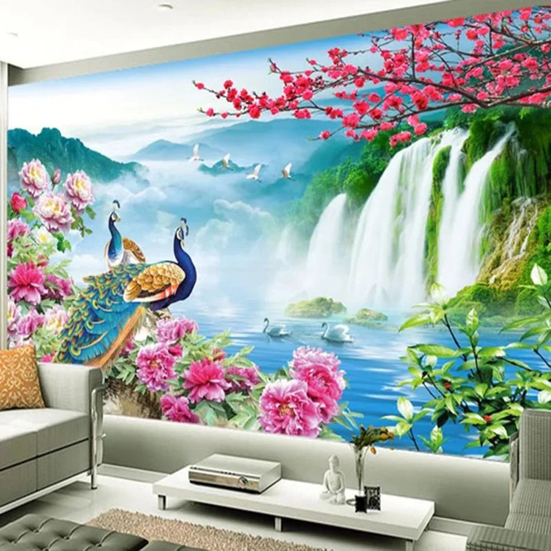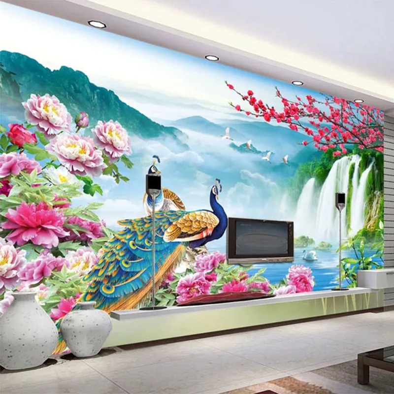 Пользовательские Настенные обои 3D Павлин пейзаж живопись природный пейзаж Фреска гостиная ТВ диван кабинет классический фон стены 3 D