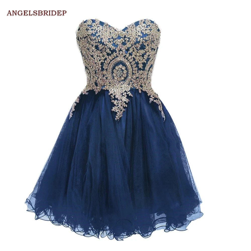 Платье для выпускного ANGELSBRIDEP, короткое, с золотой аппликацией, из тюля, для выпускного вечера, горячая Распродажа