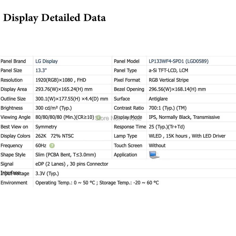Номер моделиLP133WF4 SPD1 LP133WF4-SPD1 for Dell Latitude 13 7380 7390 03PVJF