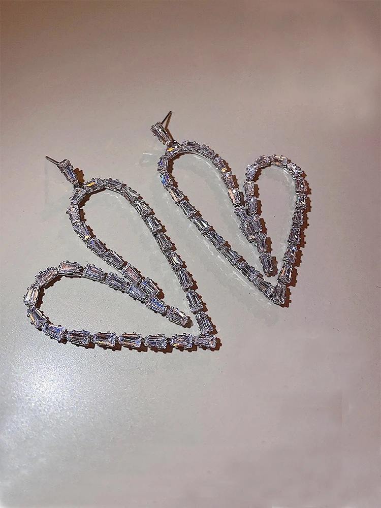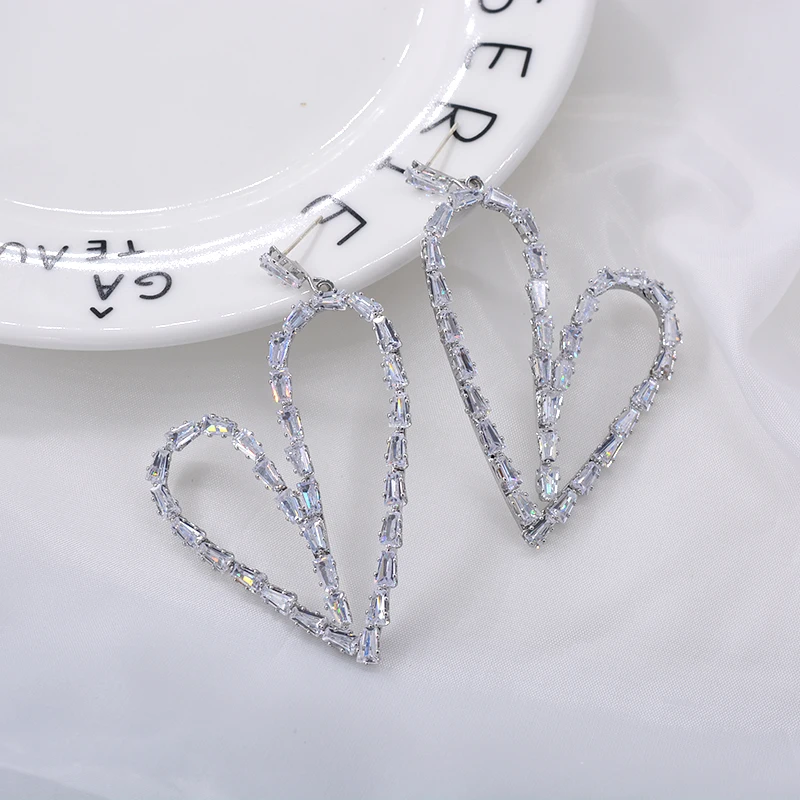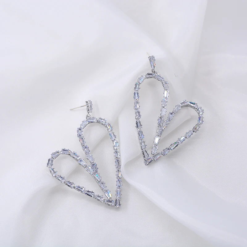 Серебряные серьги в форме сердца с кристаллами неправильной формы, ажурные модные серьги, персиковые серьги в форме сердца, женские серьги, подарки, украшения для вечеринки