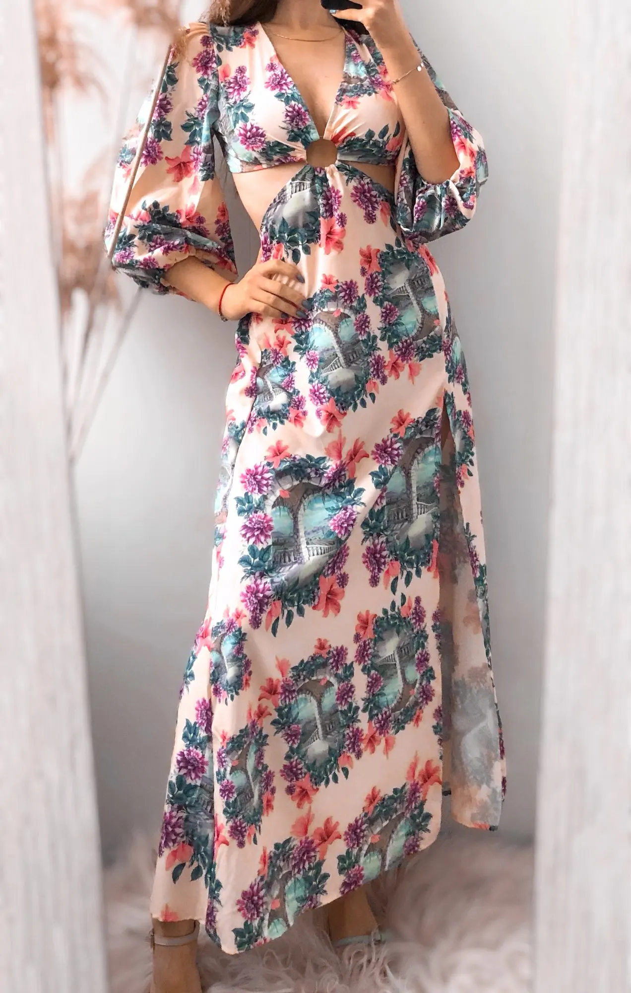 Просто идеальное платье! Полностью соответствует фото продавца. Порадовало что на рост 172 см не короткая. Впритык, но смотрится красиво. Ткань полиэстр, похоже на шелк. Электризуется. Но проблему решает антистатик. Все строчки ровные. Нитки не торчат. Ткань не тянется. Рукав не короткий. Объемный. Разрез доходит практически до талии. В области талии резинка. Платье очень удобно и комфортно. Можно носить не только на пляж. Смотрится дорого. На 88 – 60 – 94 рост 72 см подошло идеально