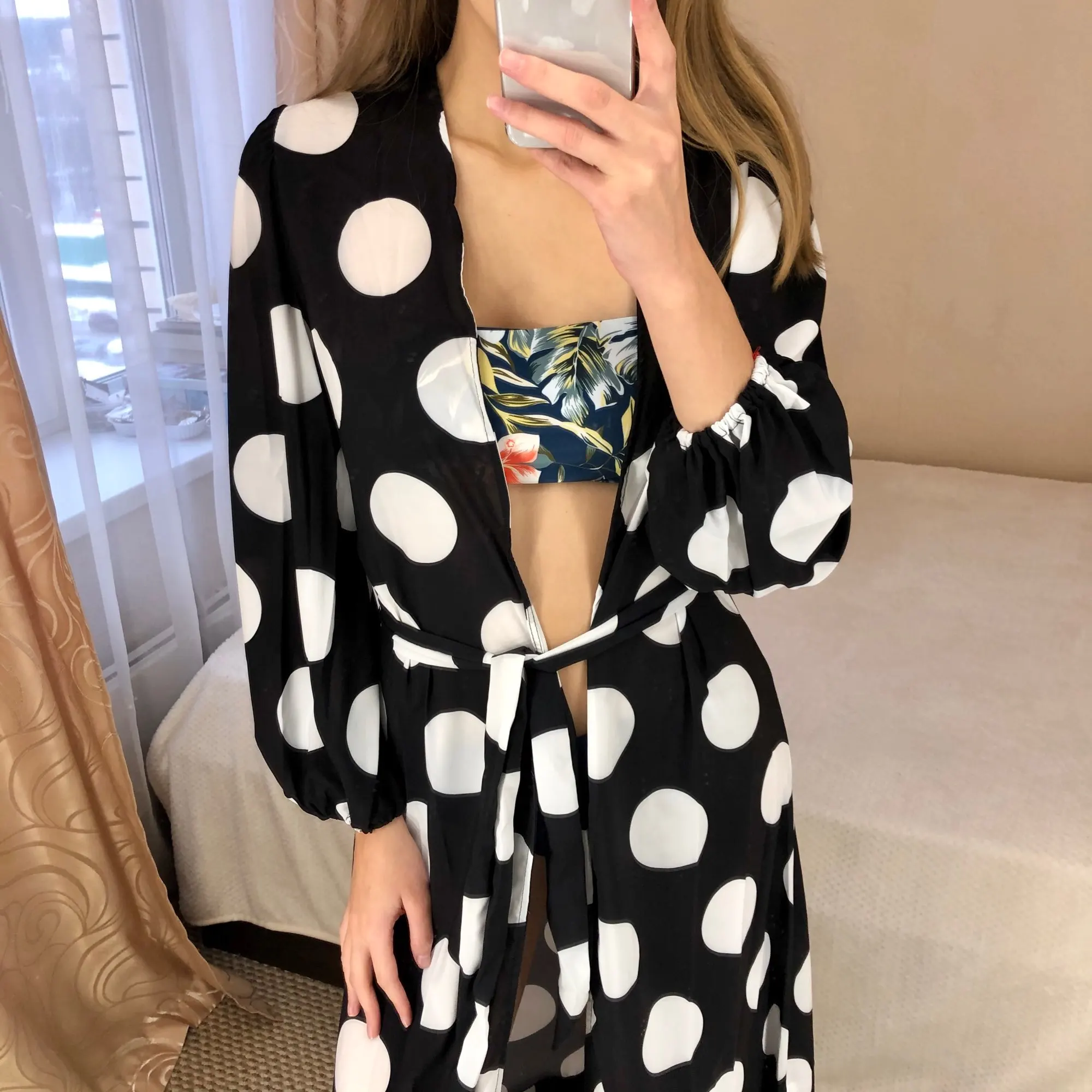 Пляжное платье, 2021, бикини, накидка, принт, купальный костюм, женское кимоно, размера плюс, туника, сексуальные накидки для купальников с длинным рукавом
