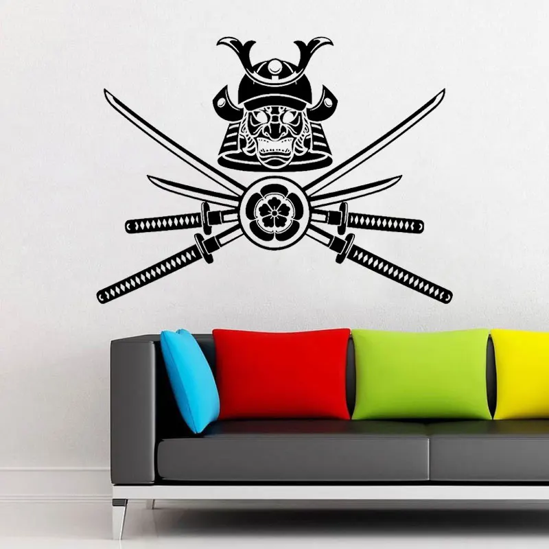 Самурайские японские бесстрашные воины маска на стену виниловые нак...