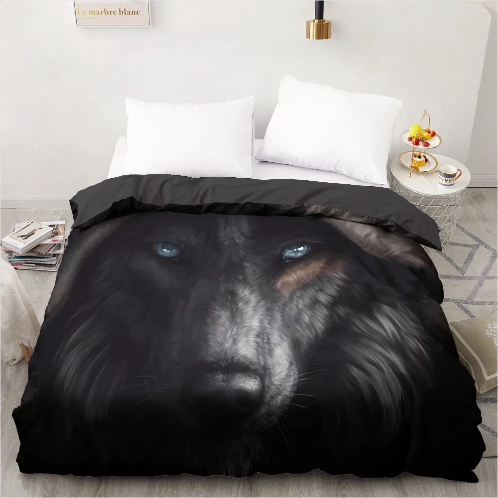 Пододеяльник с 3D HD цифровым принтом на заказ, одеялочехол для одеяла набор постельного белья Queen King 240x220, постельное белье с изображением животных Черный волк