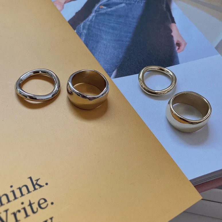Кольцо женское, золотистое, нестандартной геометрической формы, с яркой поверхностью, HUANZHI, 2020