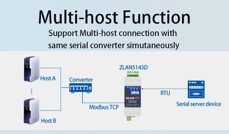 ZLAN5143D имеет функцию преобразования Modbus TCP в Modbus RTU, а подробное использование см. В руководстве пользователя