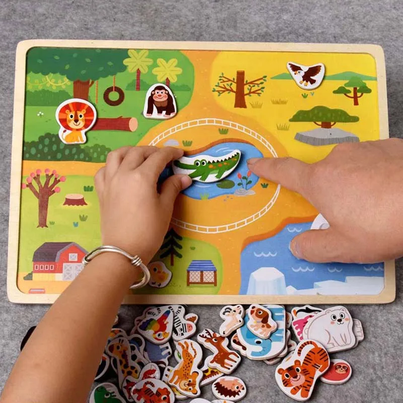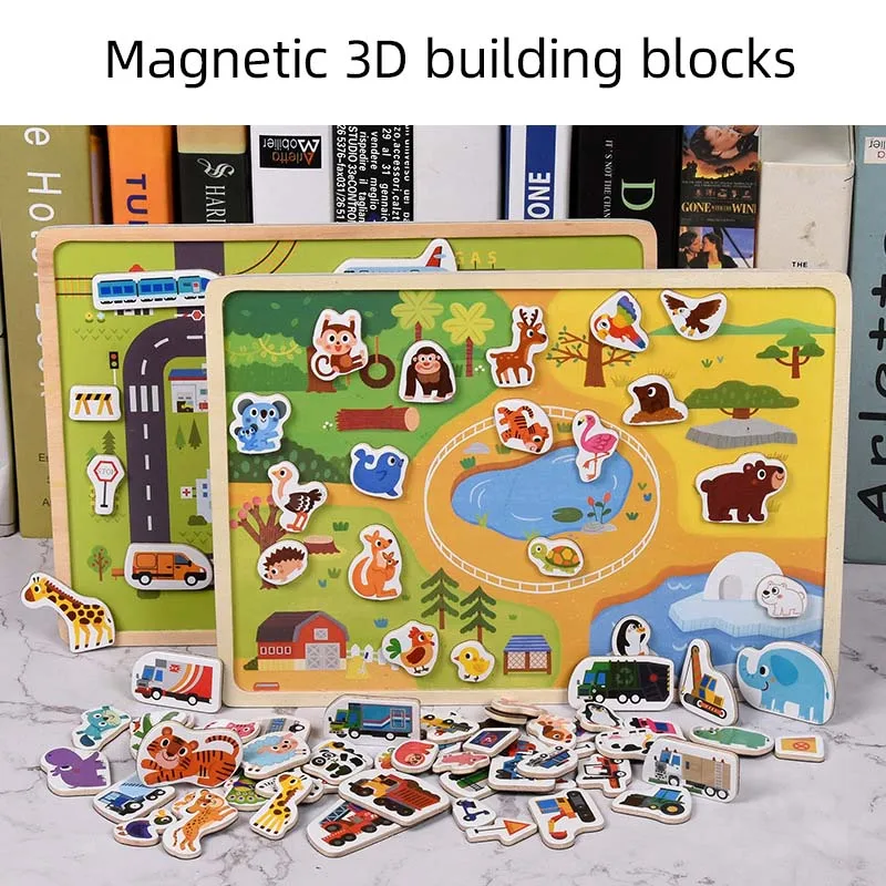 Деревянный магнитный пазл, животные и транспортное средство, игра для детей, раннее обучение, Обучающие игрушки, головоломки для детей