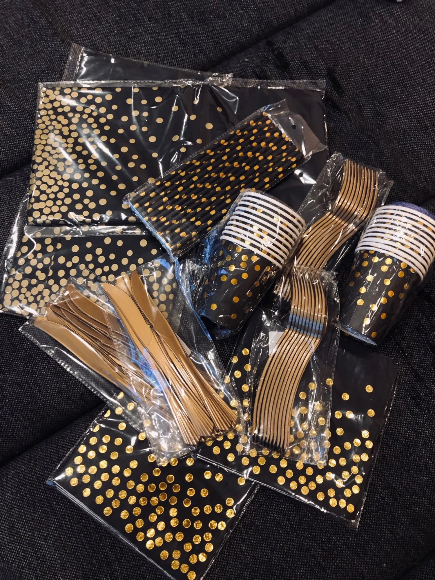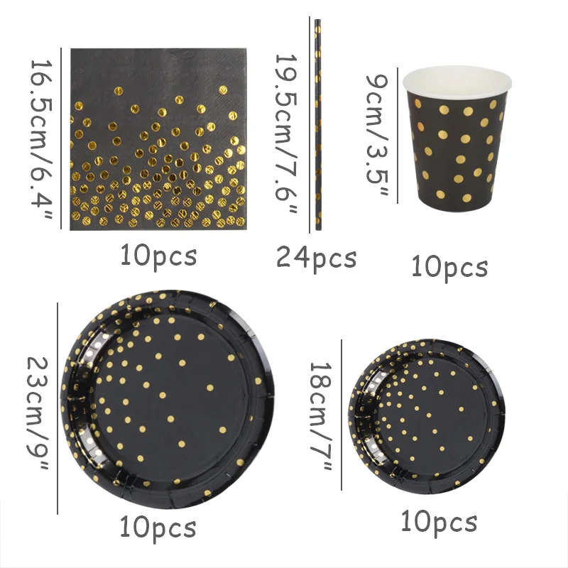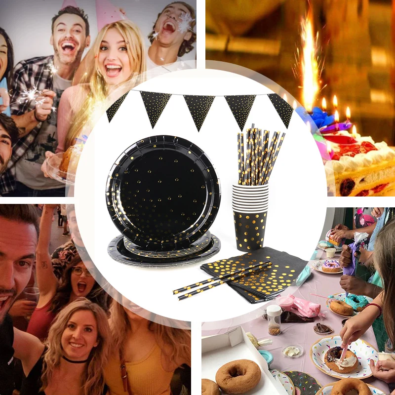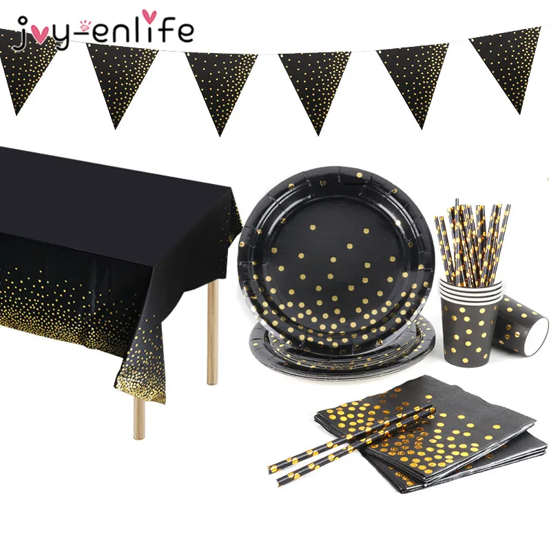 Одноразовая бумажная посуда в горошек, черного и золотого цвета, 30405060th, украшения для вечерние, набор С Днем Рождения