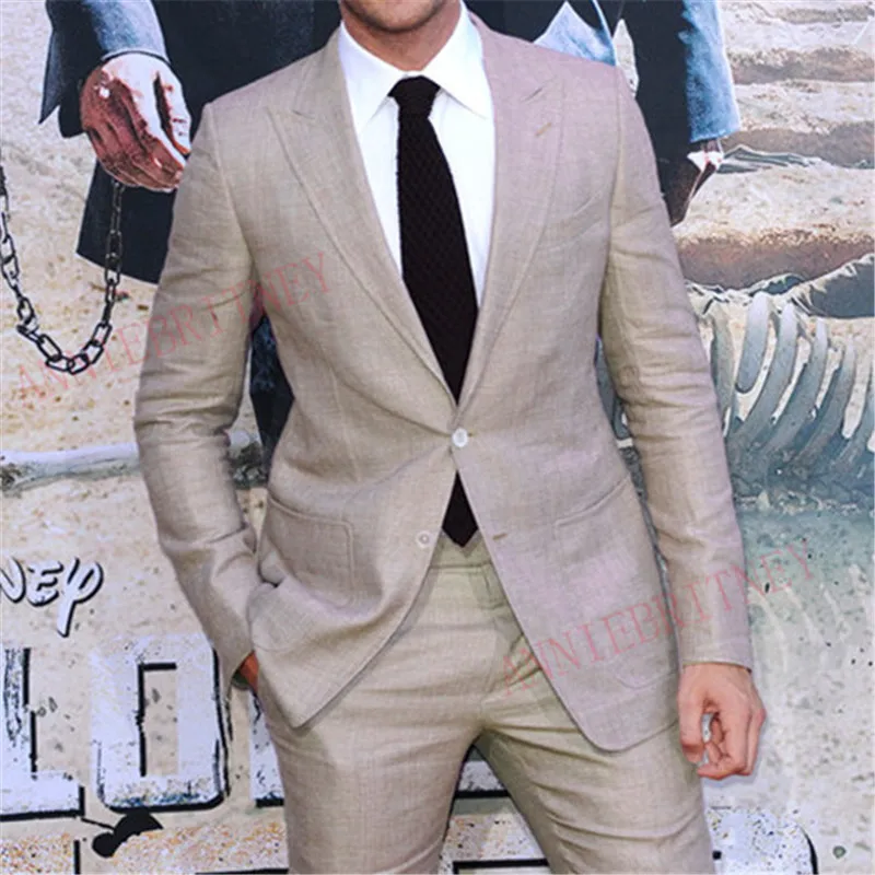 2020 синие мужские костюмы повседневные льняные пляжные жениха Нарядные Костюмы для свадьбы смокинг с учетом большой Размеры летние костюмы для мужчин, куртка, штаны, 2 шт.