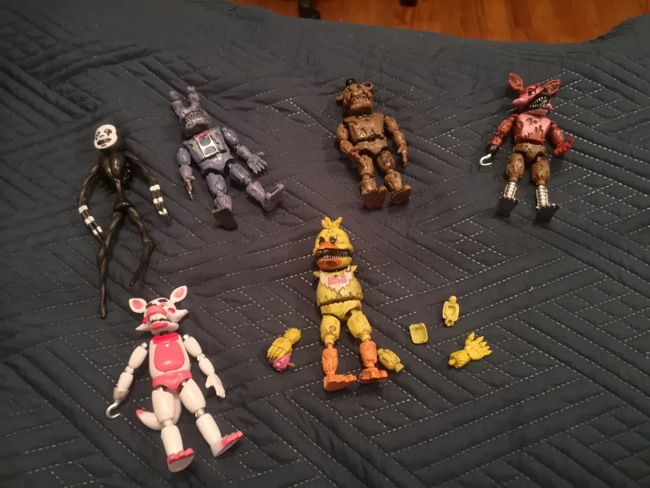Куклы наполовину сломаны, их едва ли можно держать ногами, а огни не работают в основном. Они должны доставить их в своих оригинальных коробках.