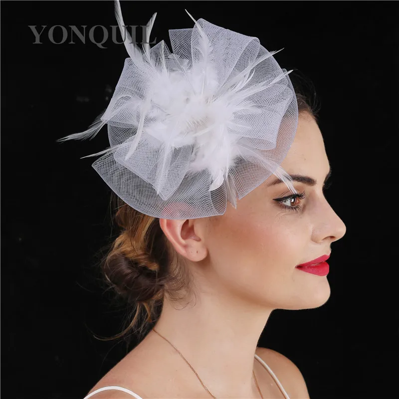 Элегантные женские модные головные уборы зажим для волос невесты Chic чародей волос Праздничная свадебная брошь ужин головной убор фантазии перо