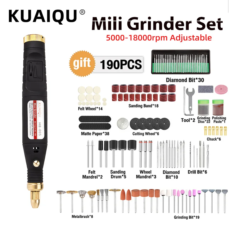 Электрическая мини дрель KUAIQU, набор для шлифовки и гравировки, 5000 18000 обмин
