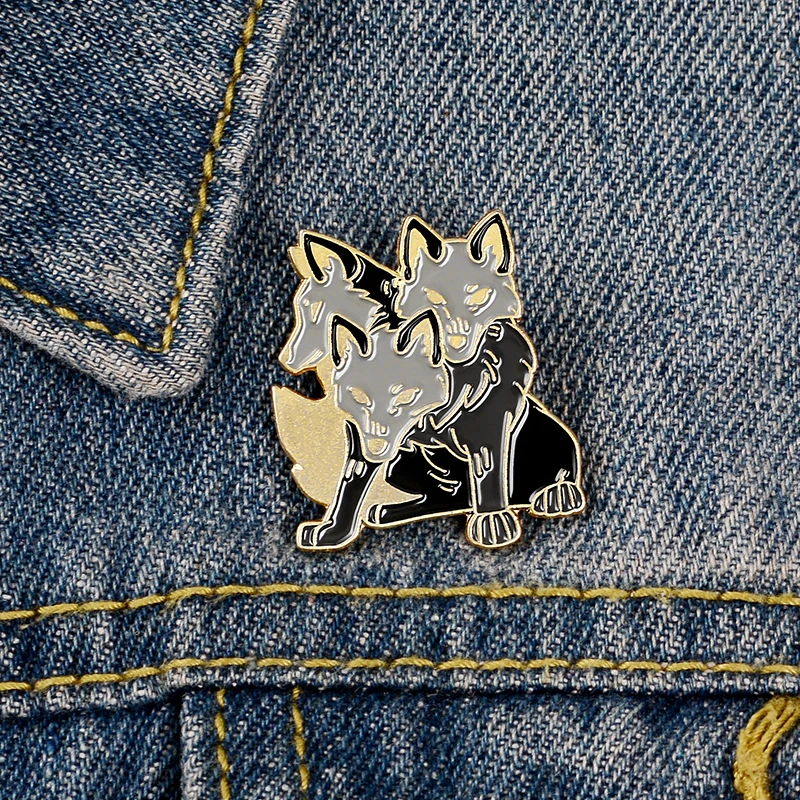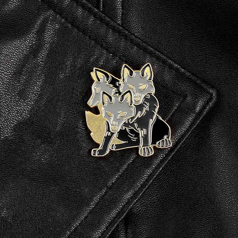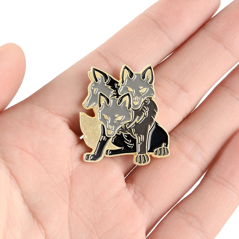 Эмалированные булавки с волком, собакой, страшным интерфейсным тройным головом, собака, ошейник рубашки, рюкзак, ювелирные изделия, подарок на Хэллоуин