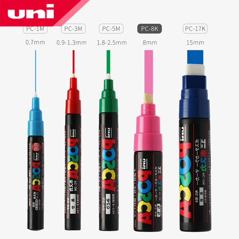 Перо-маркер UNI Posca, полный комплект, профессиональная роспись, популярная рекламная ручка, хайлайтер, акриловая ручка-маркер, искусственная кожаискусственная кожа
