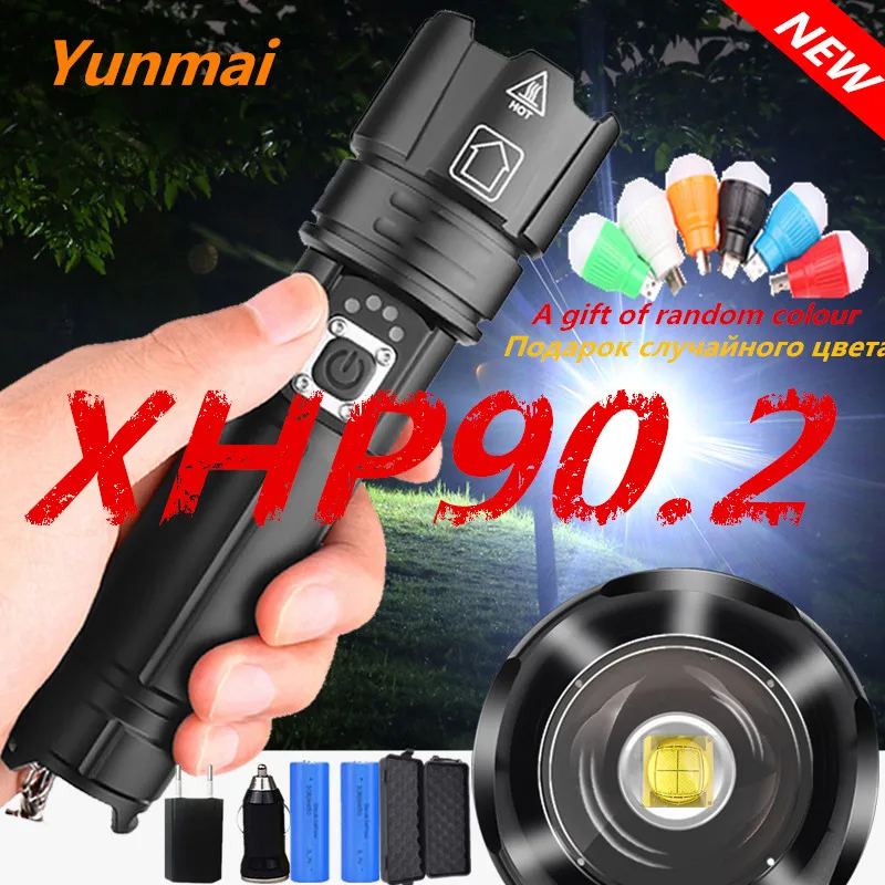 Мощная светодиодная вспышка XHP90.2, тактический светильник онарь с аккумулятором 2020 лм, с зумом 18650 и зарядкой от USB, подарок, 18650