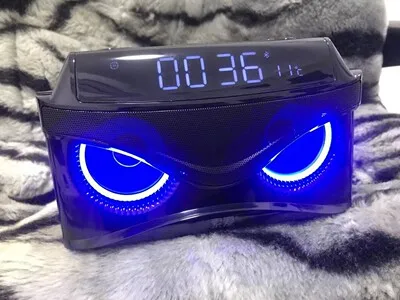 Внешний вид высокий, басы очень сильные, и громкоговорители могут мигать с ритмом. Может использоваться для дома, автомобиля, улицы и компьютера. Он имеет мощные функции и может использоваться в качестве будильника. Время перевозки быстрое. Материал внешнего вида: очень крутой, есть свет, кошачьи глаза будут мерцать, DJ очень атмосферные звуковые эффекты: очень хороший тон, без шума, чистый звук. И высокие частоты громкие