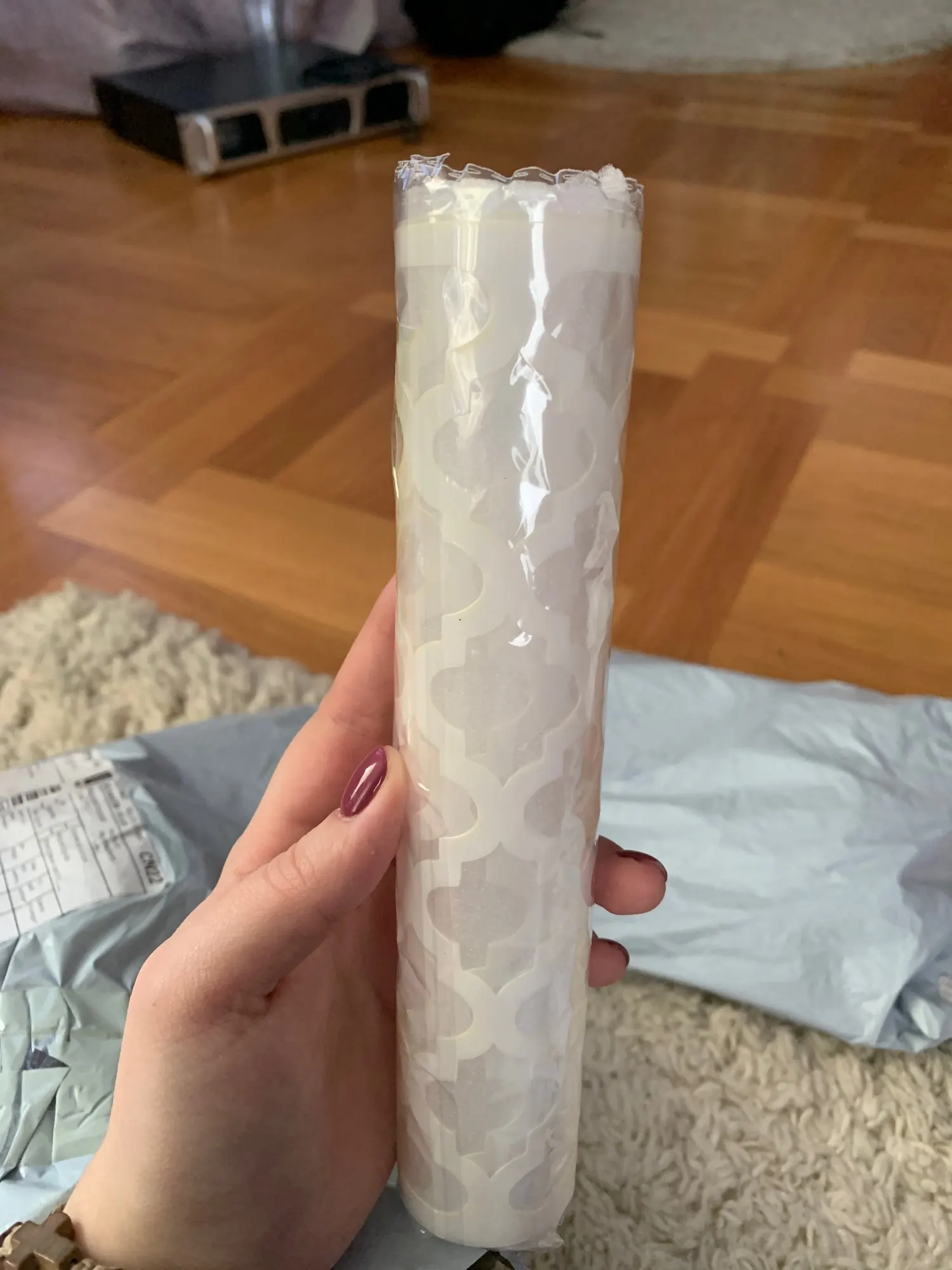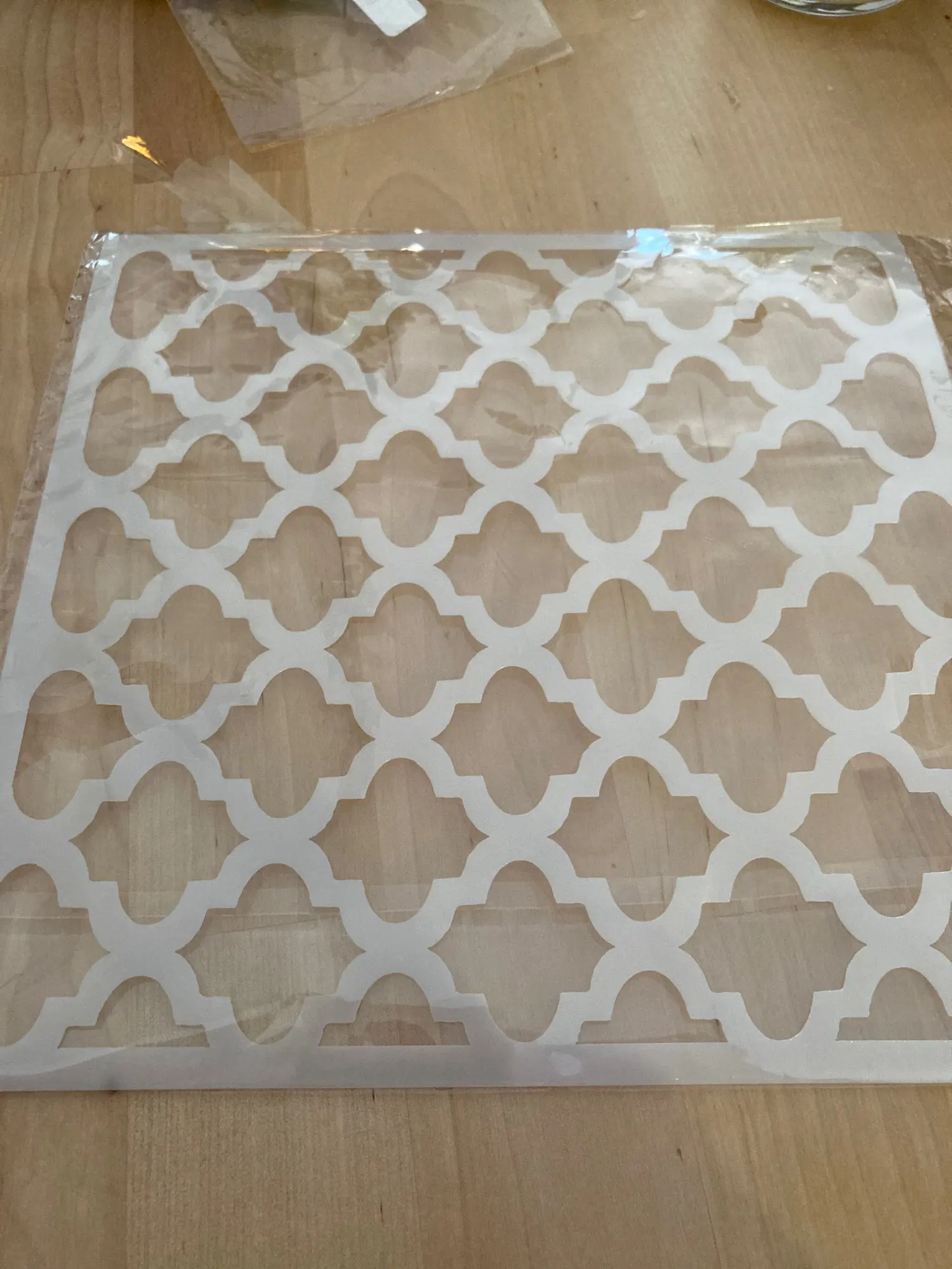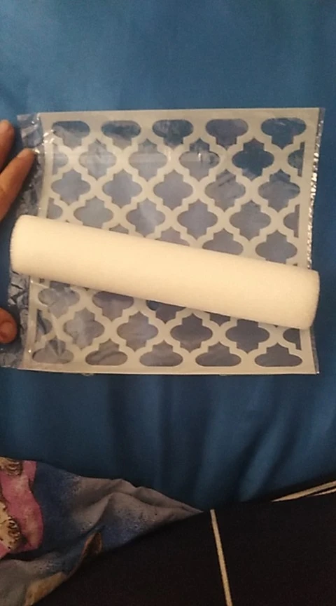 Очень приятный трафарет. К сожалению, свернутый, поэтому придется попробовать его использовать.
