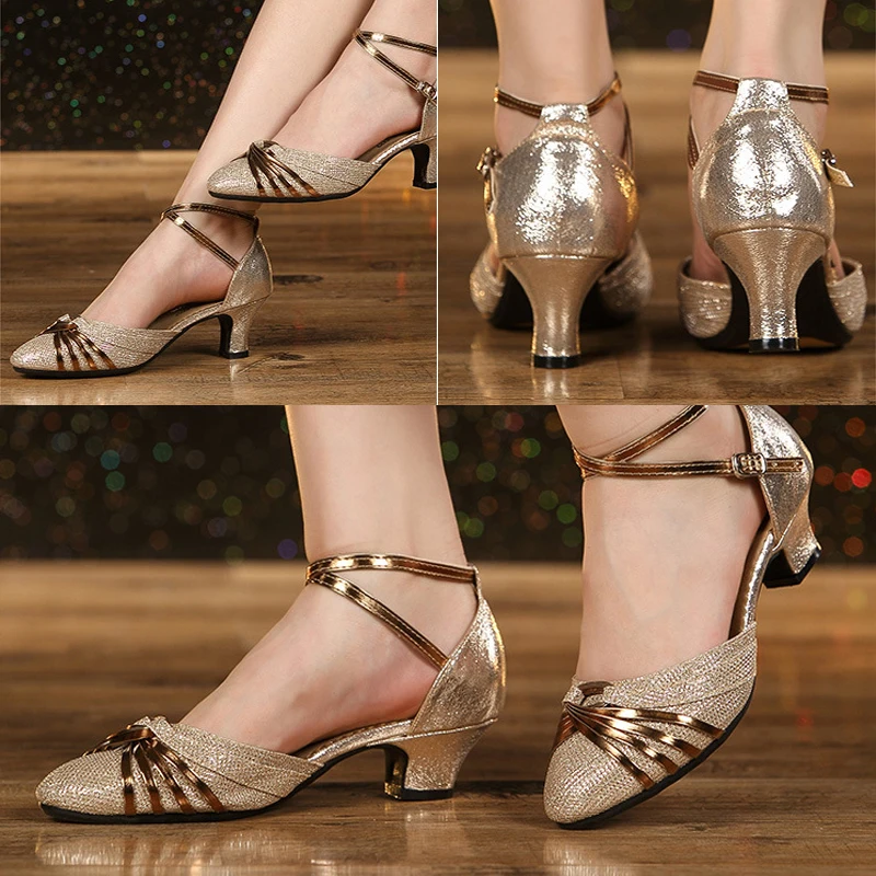 Женские туфли для латиноамериканских танцев, черныезолотистыеСеребр...
