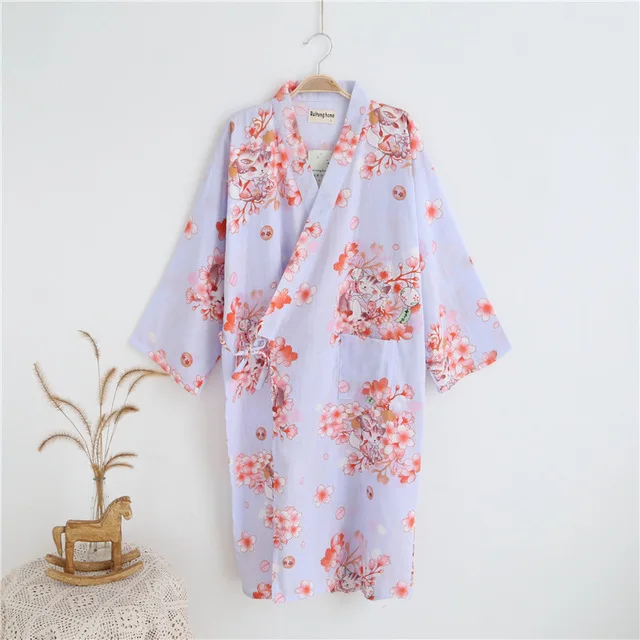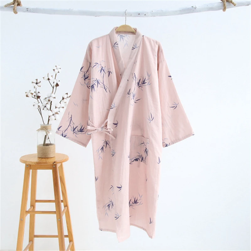 Кимоно Женская пижама, хлопковая двухслойная газовая японская Домашняя одежда, пижама, одежда для сна с ночным видением, свободная одежда для сна