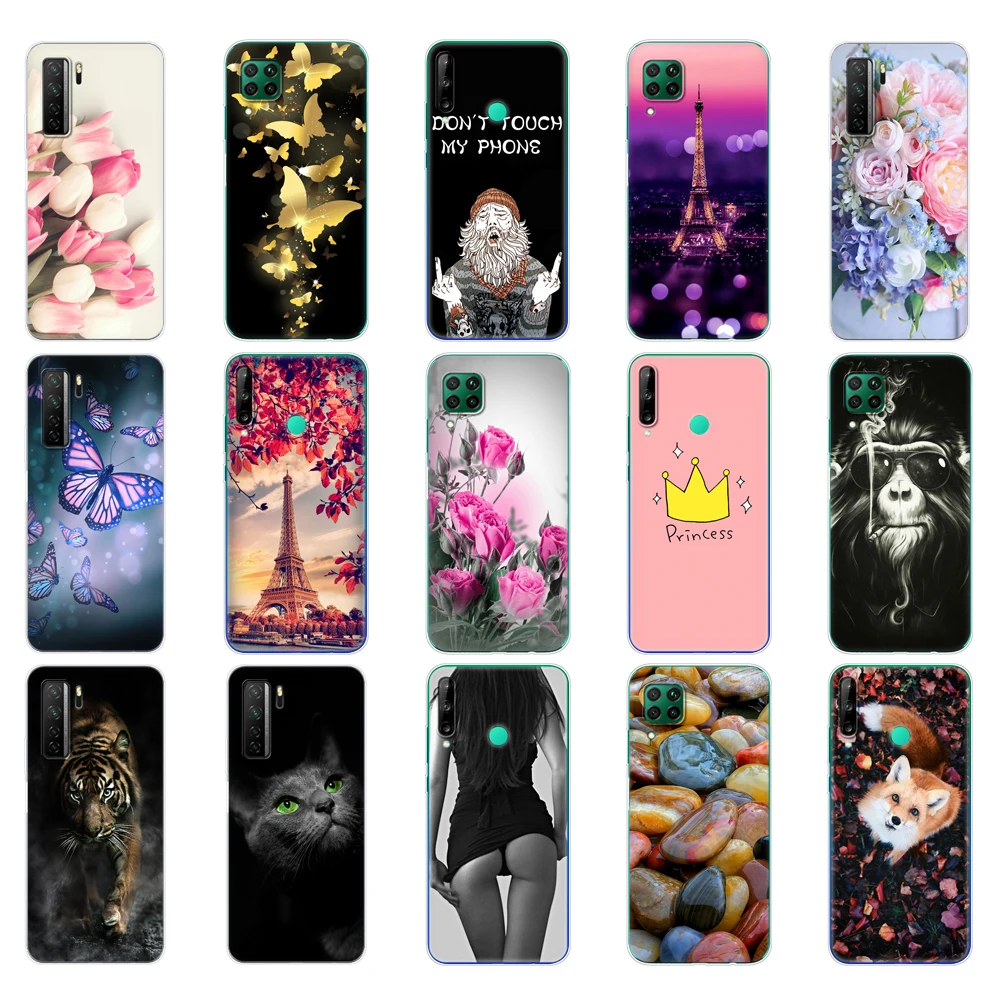 Чехол для Huawei P40 Lite 5G 4G, задняя крышка для Huawei P40 Lite E, чехол для телефона P40Lite, бампер из мягкого ТПУ силикона, кошки, тигра, цветка